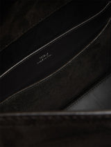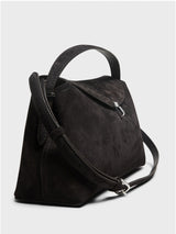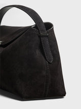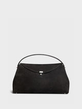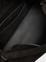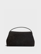 T-Lock Top Handle Bag in Espresso, crafted in Italy from supple suede and accented with a silver metal T-Lock. It's designed with a curved top flap to perfectly complement the hand and arm, and includes a detachable shoulder strap and protective feet.