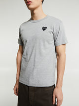 The Comme des Garçons PLAY T-shirt is made with a classic crew neck and short sleeves. Crafted from 100% cotton, it features iconic heart embroidery on the chest. The T-shirt is designed with piping around the neck and short sleeves.