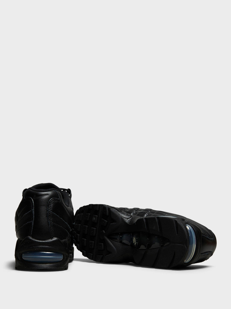 The Nike Air Max 95 is updated in an all-black finish with panels of tumbled leather. Inspired by human anatomy, its layered construction and contoured fit remain true to the original design. A cushioned midsole with visible Max Air units at the forefoot and heel completes the sneaker.