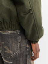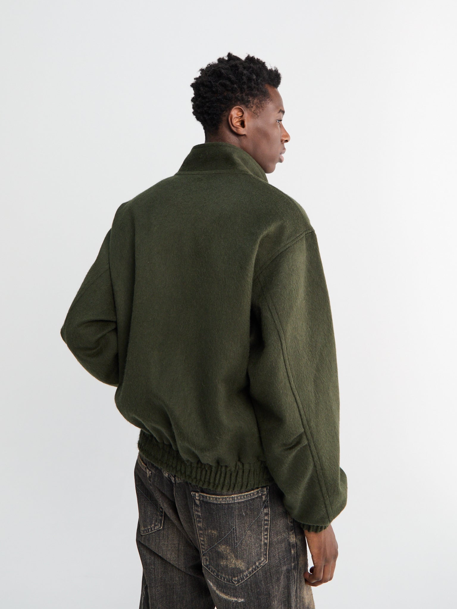 Baby Camel Flannel Zip Blouson in Dark Olive