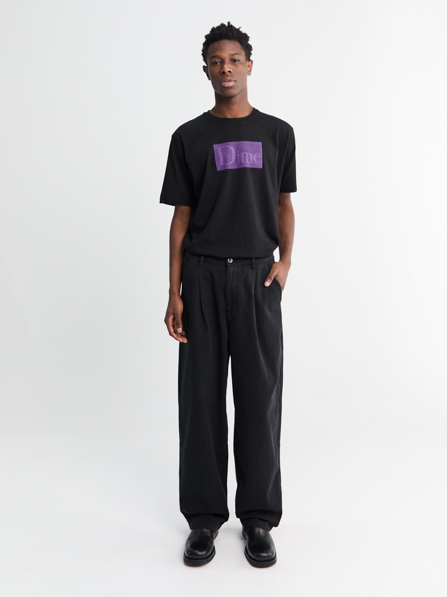 Pleated chinos with front pockets, belt loops, and a subtle embroidered Dime logo.