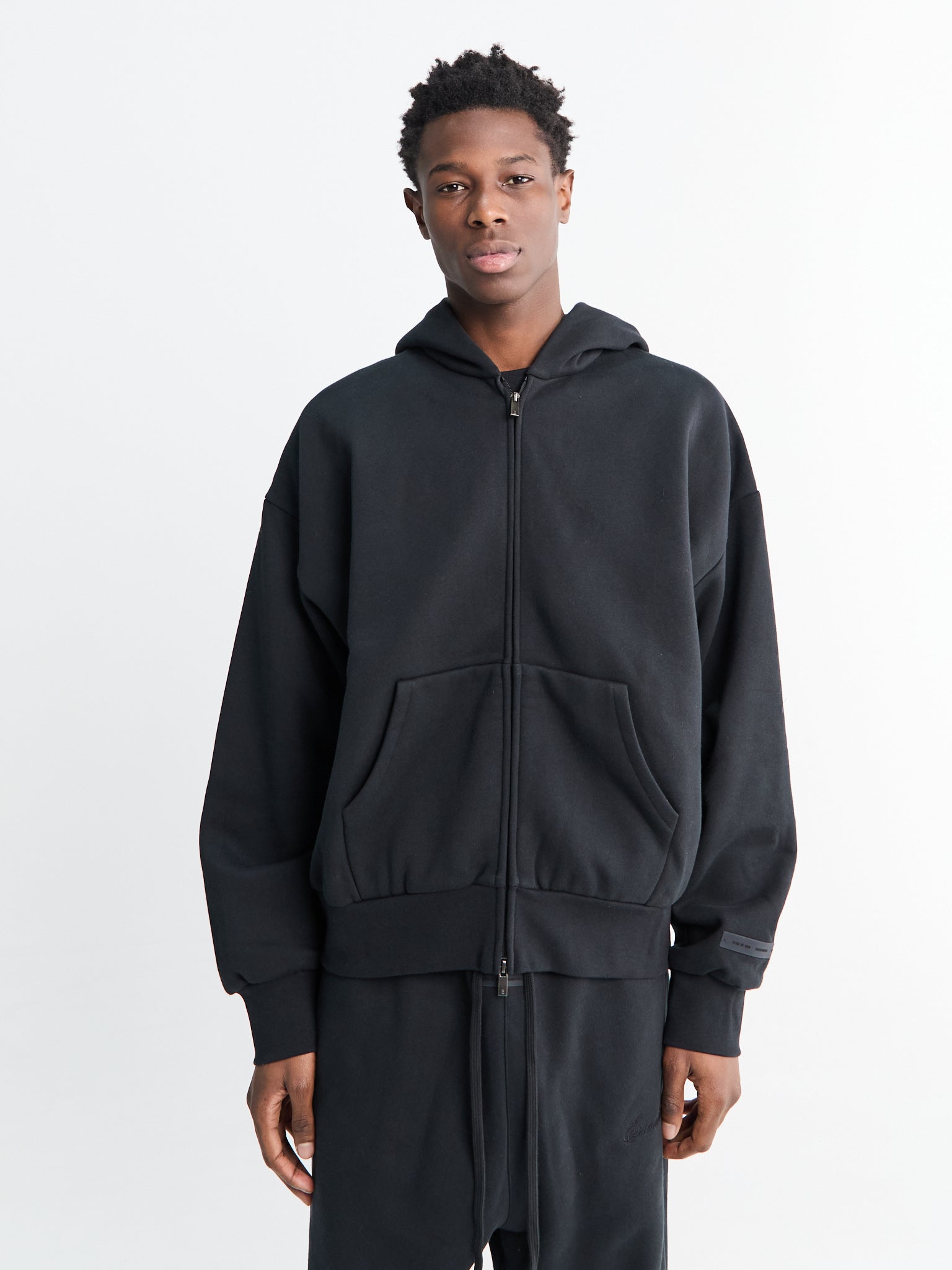 Classic Fit Fleece Zip-Up Hoodie in Jet Black
