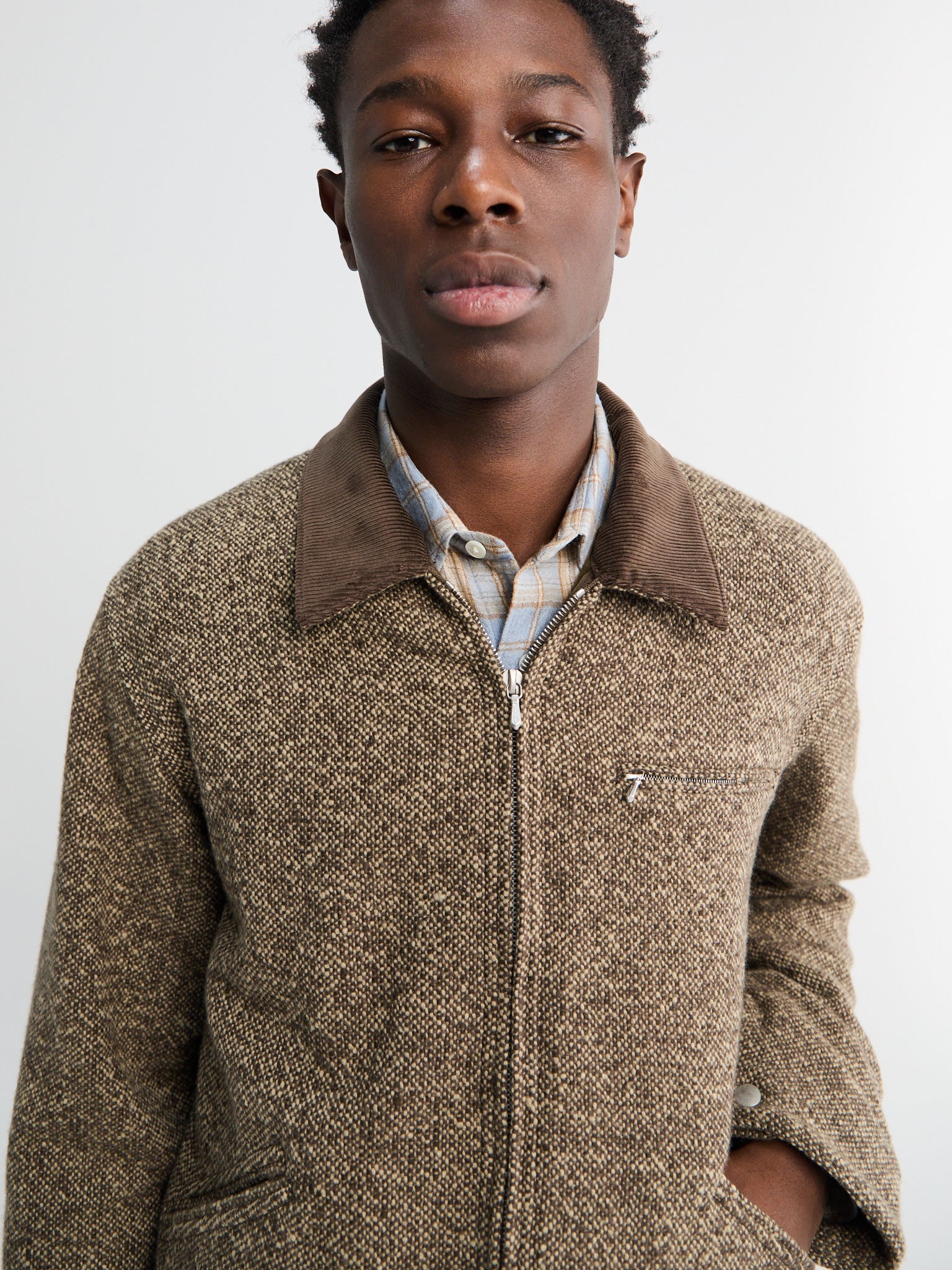 Tweed crafted using fine Super 120’s wool and spun into original thick yarns that feature a delightful mix of neps and irregularities. The rustic appearance makes for a fun contrast to the soft luxurious feeling of the jacket.