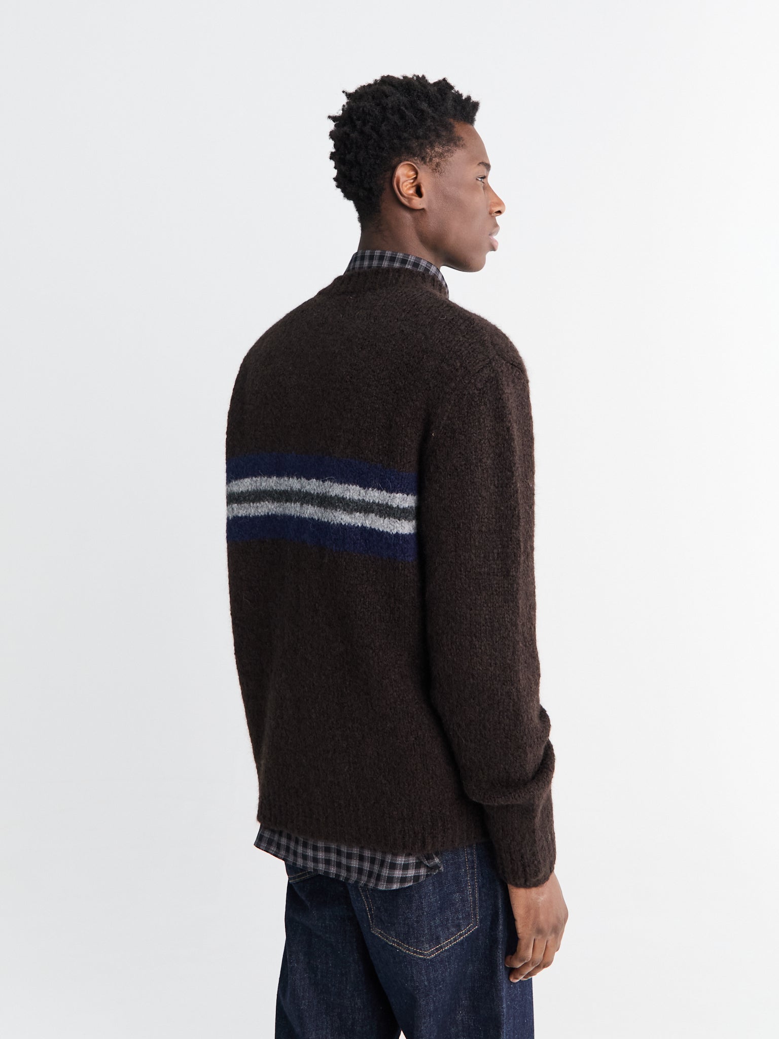 Zip cardigan from Paloma Wool featuring a wraparound intarsia stripe across the front and back, with a custom double zip pull.