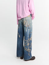 Classic Jeans from Acne Studios in a petite version featuring a seasonal trompe-l’oeil print of crystals and bows, crafted from denim.