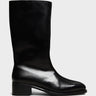 The Pedestrian Bootfeatures a 35 cm shaft, 4.5 cm stacked heel, and Goodyear welt construction for resoling. The stitched leather sole and full-length insole provide durability and support