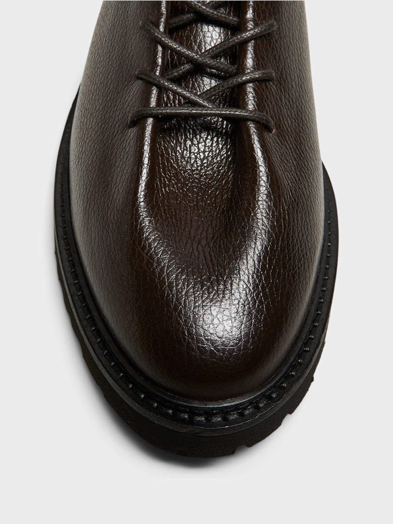 Made from Ebano dark brown jumbo grained calf leather, the shoes feature a black bold lug sole with a triple-stitched welt and Blake construction. They come with a dust bag.