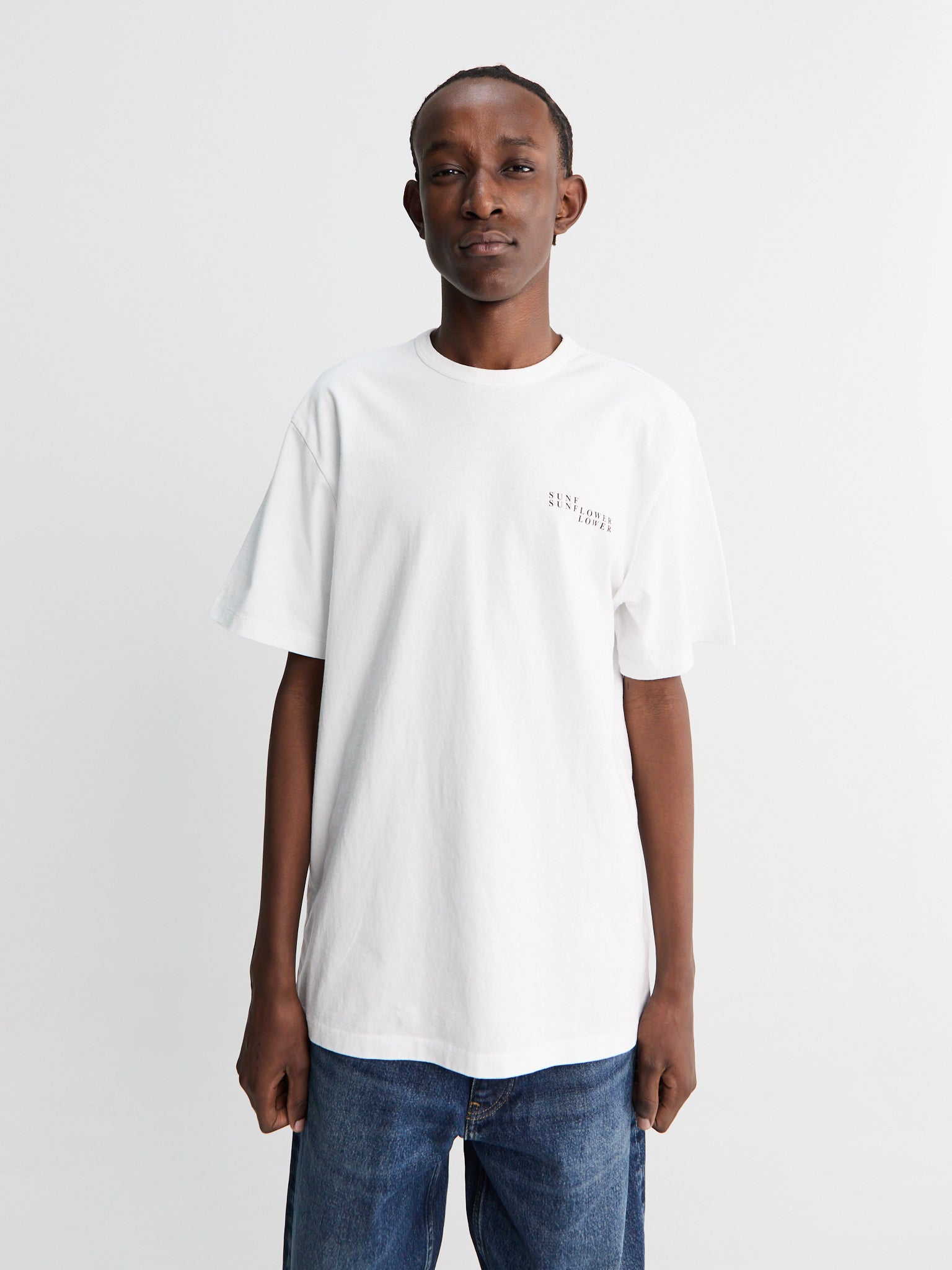 Classic white t-shirt crafted from organic cotton with a comfortable crew neck rib and logo print at the chest