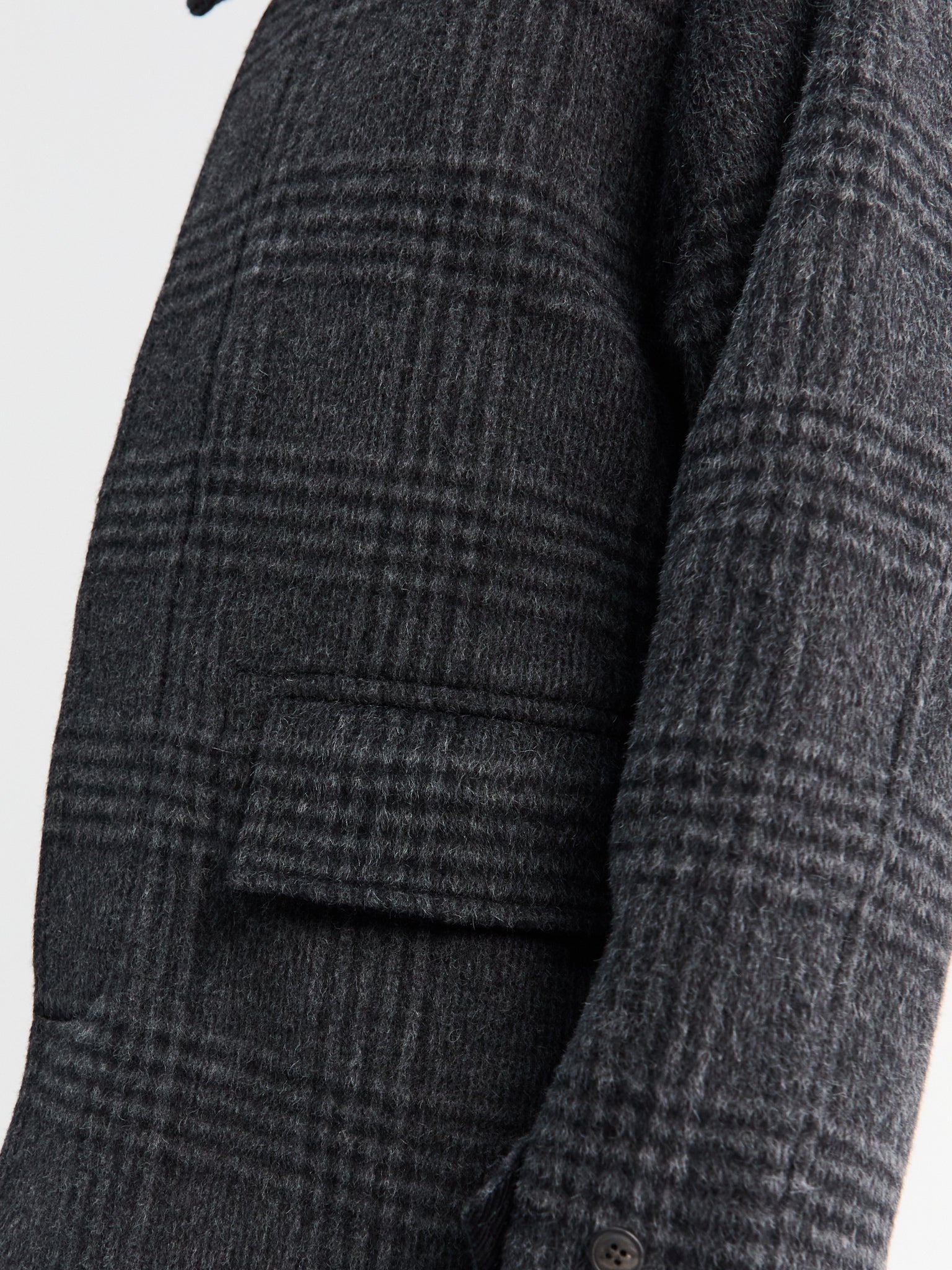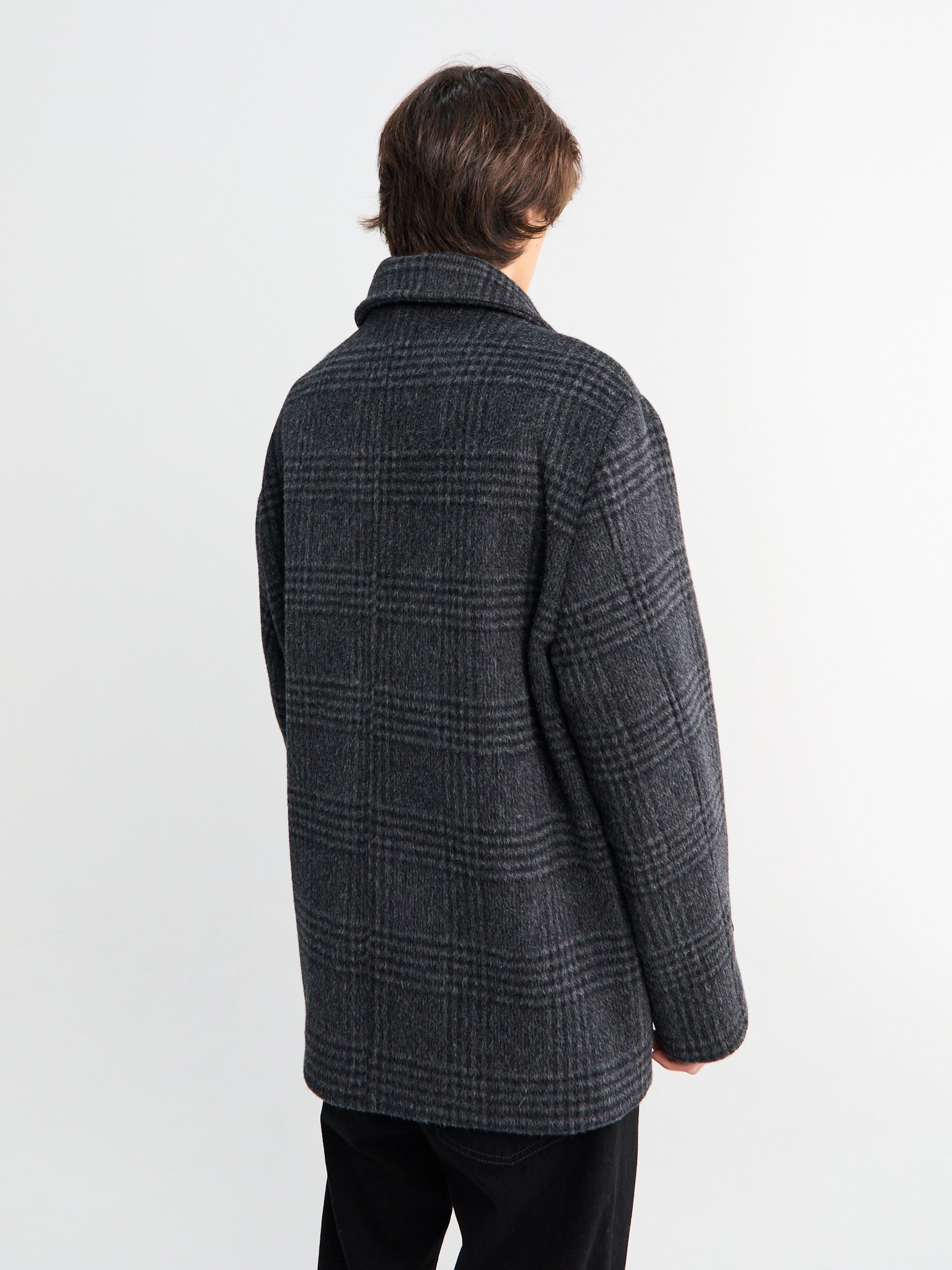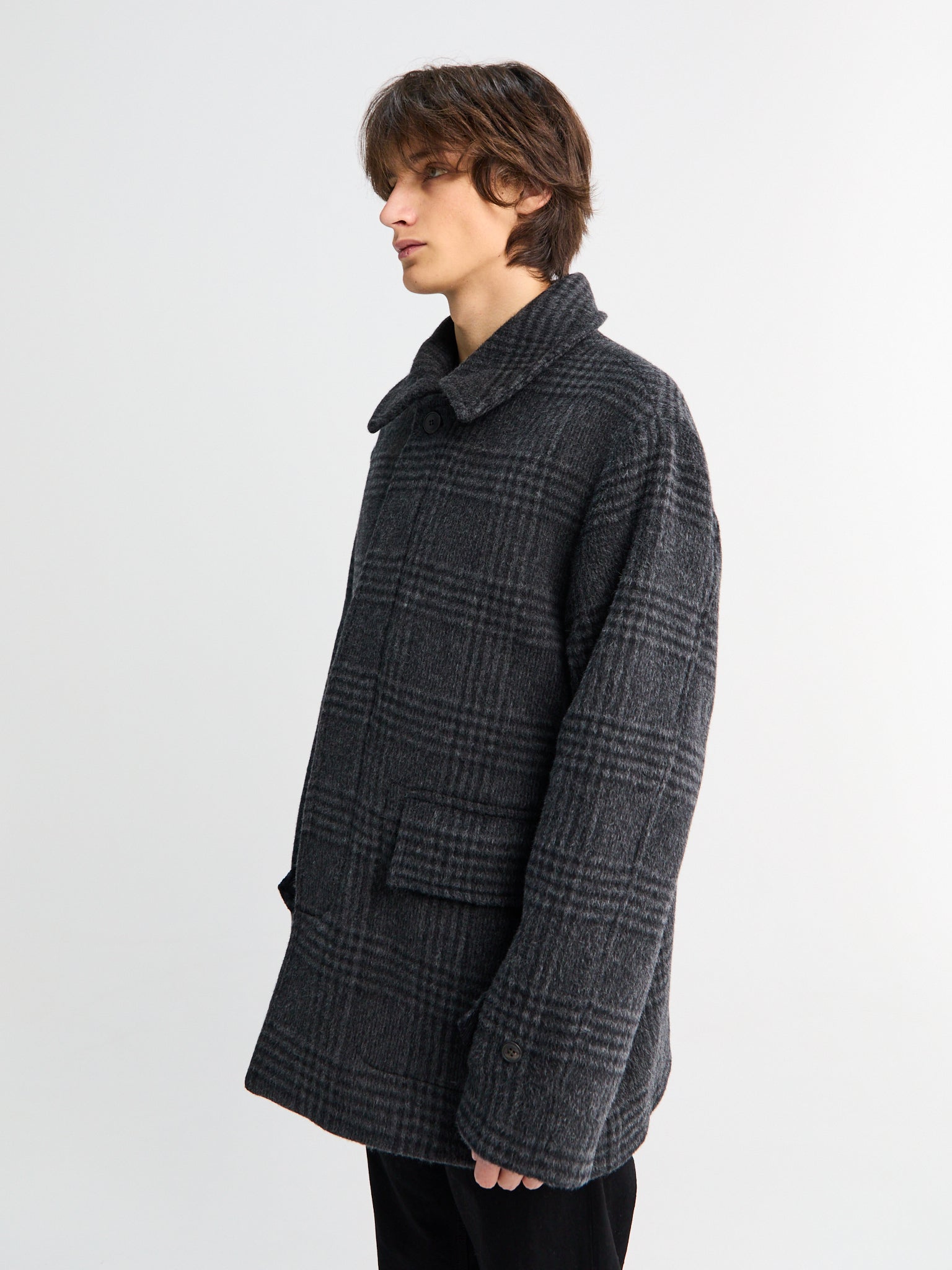 A refined short coat crafted from Italian deadstock wool with a subtle alpaca blend. The supple fabric drapes with understated elegance, while the slightly boxy silhouette delivers an effortlessly relaxed aesthetic