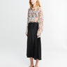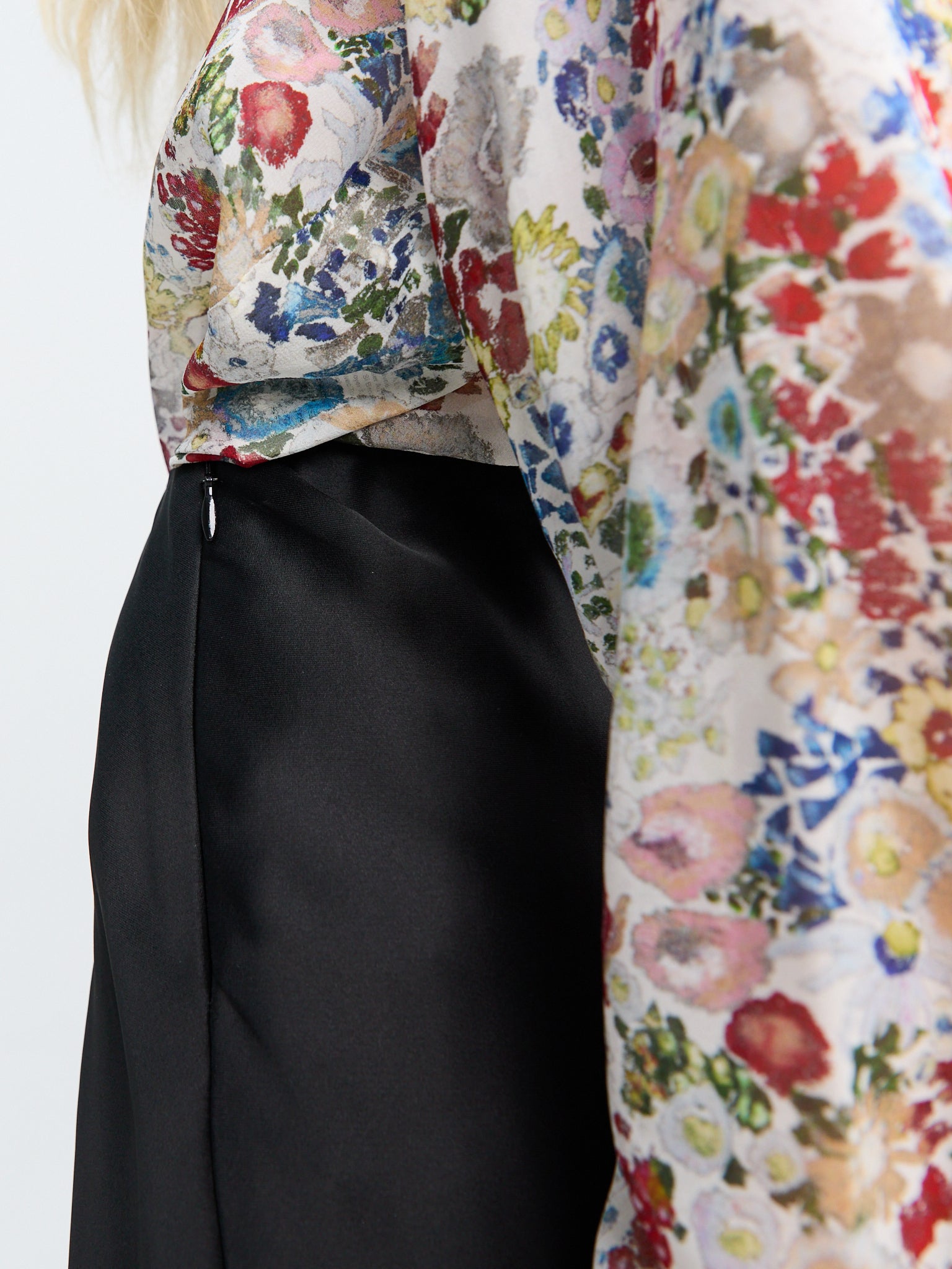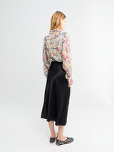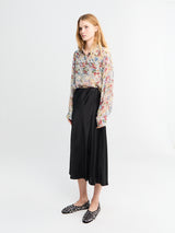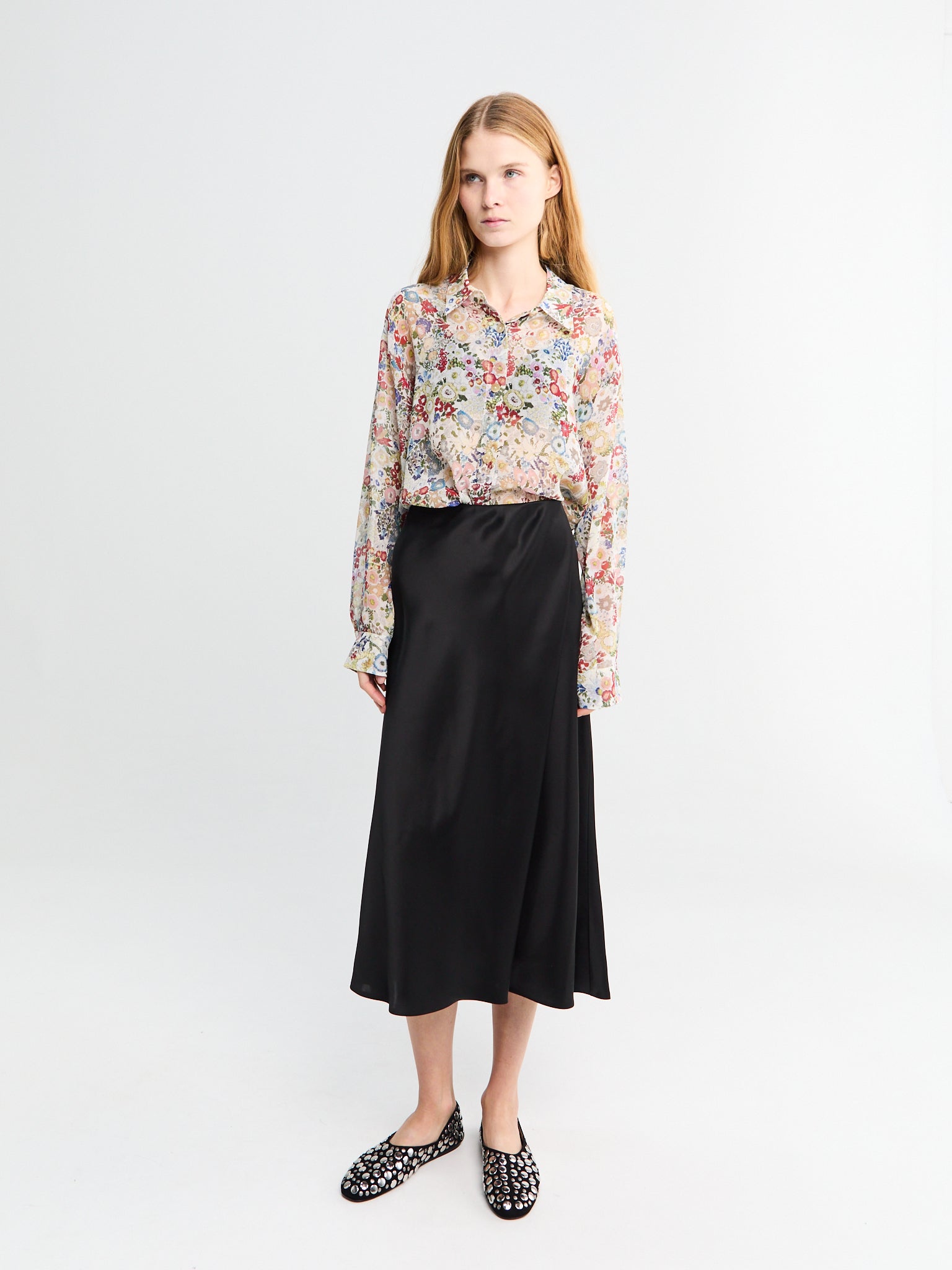 Constructed from weighty crêpe jersey, this high-waisted skirt features strategically placed godet panels that shape an elegant A-line form. The design allows the hem to move with ease and fluidity, creating a refined silhouette that flatters the natural waistline.