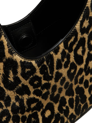 The Eldorado Small is a compact shoulder bag crafted in printed calf hair with a contrasting leather base. It features an adjustable leather shoulder strap with a metal jewel buckle and a magnetic button closure. The interior includes a flat leather pocket with a blind embossed Jil Sander logo. Finished with a nappa leather lining and a curved base in contrasting leather.