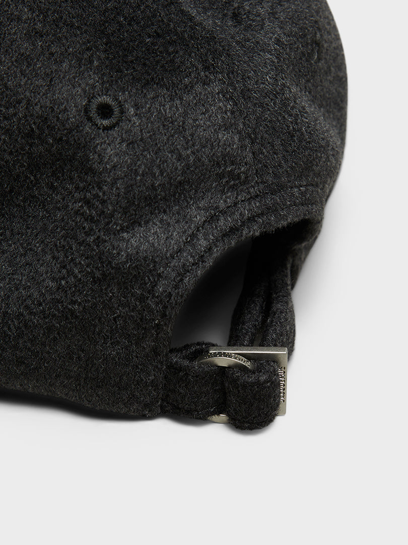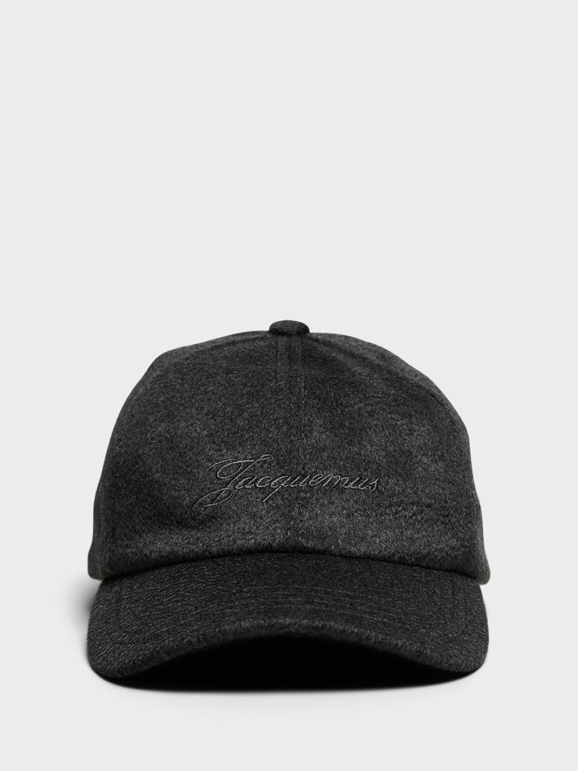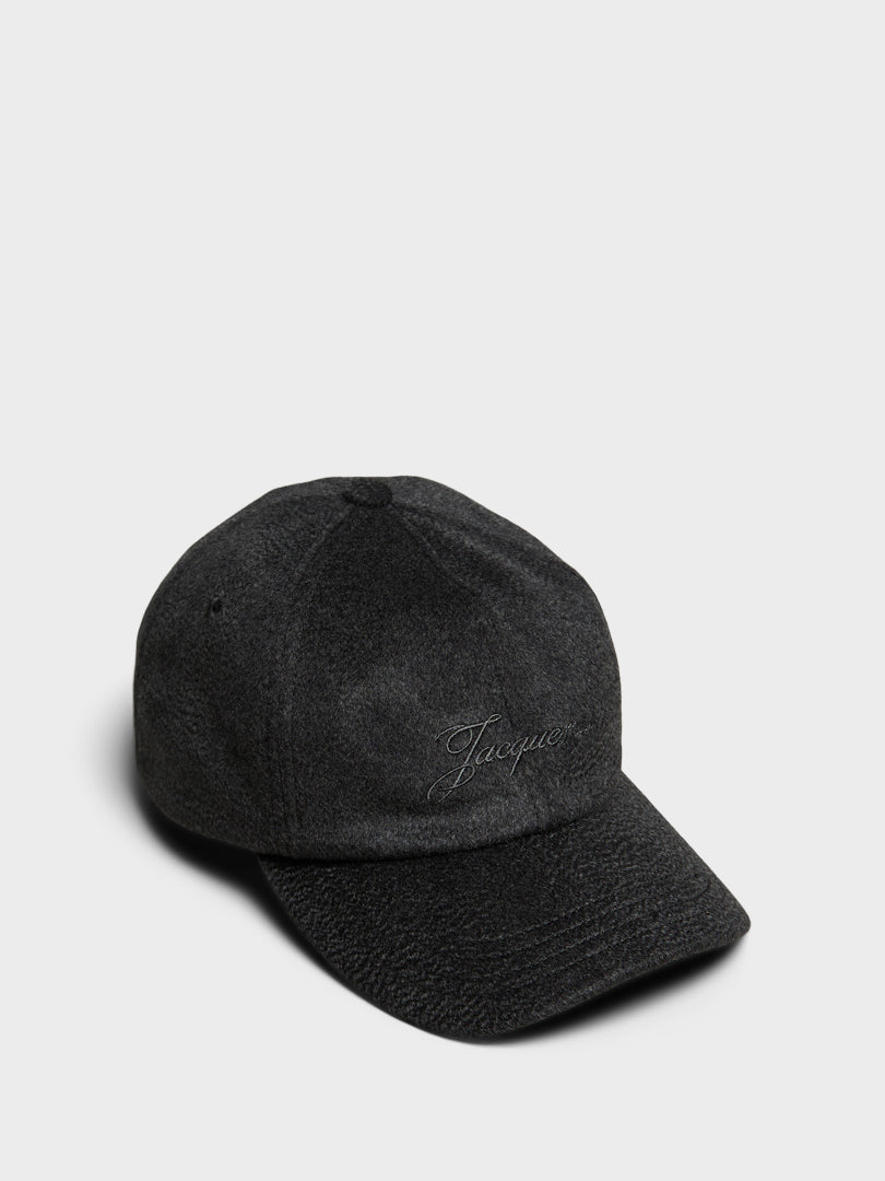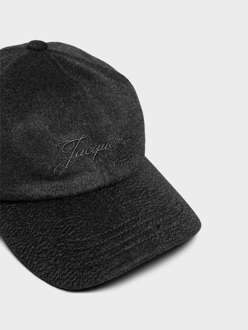 This wool cap, La Casquette Cachemiro, features an embroidered logo, adjustable strap, and detailed engraved hardware.
