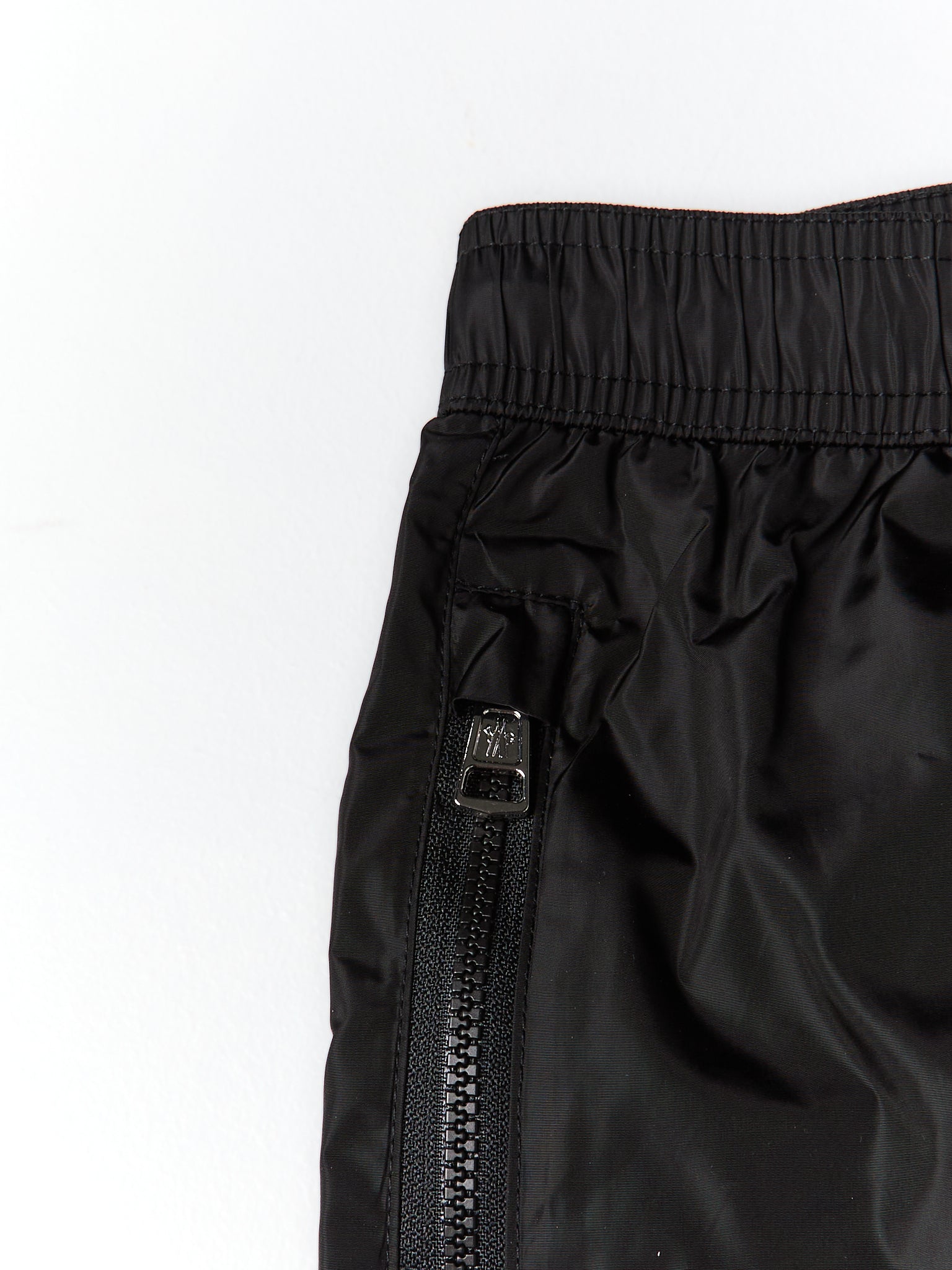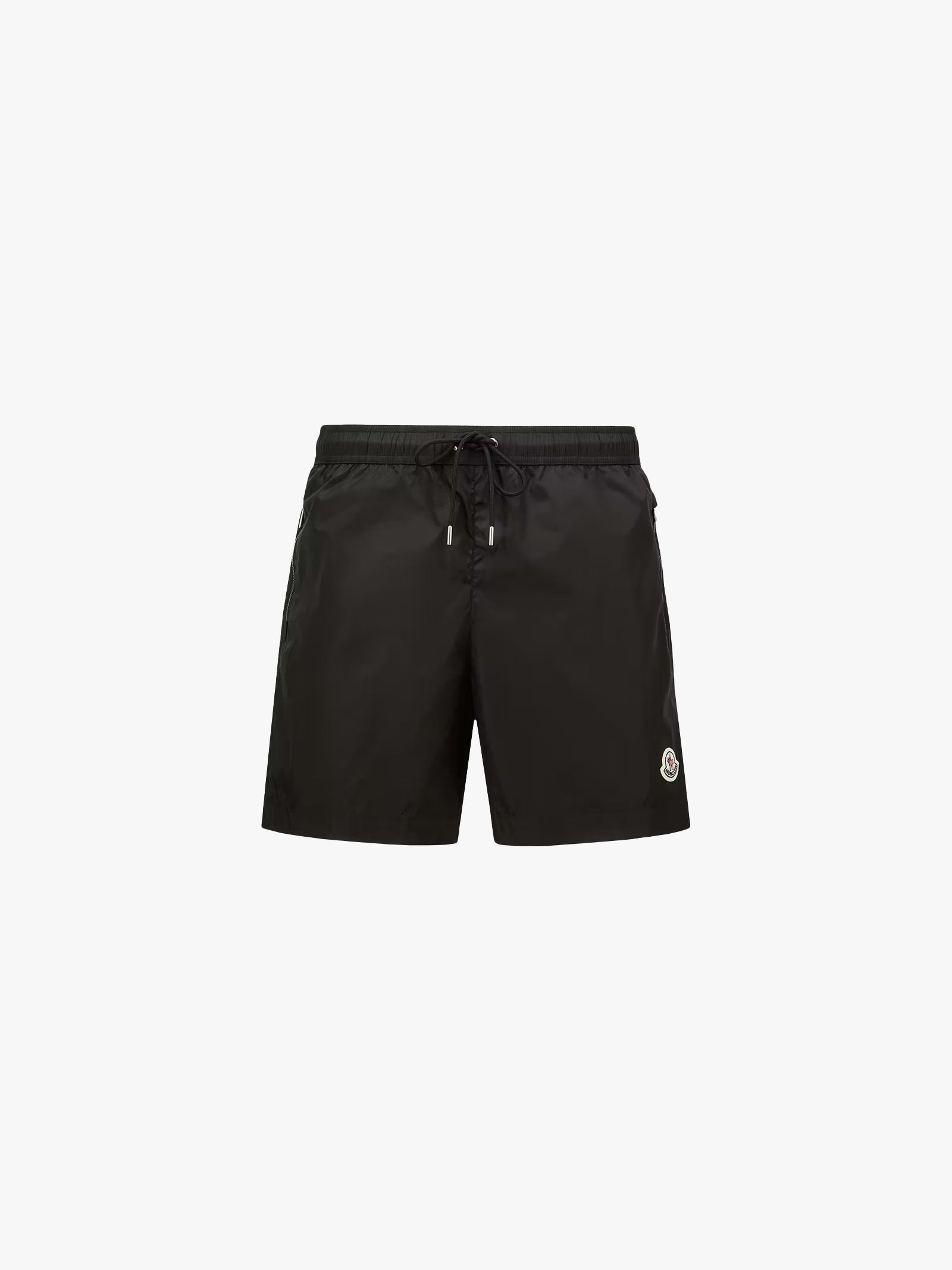 Logo Patch Swim Shorts in Black feature nylon construction with zipped pockets and a subtle logo patch for everyday wear.