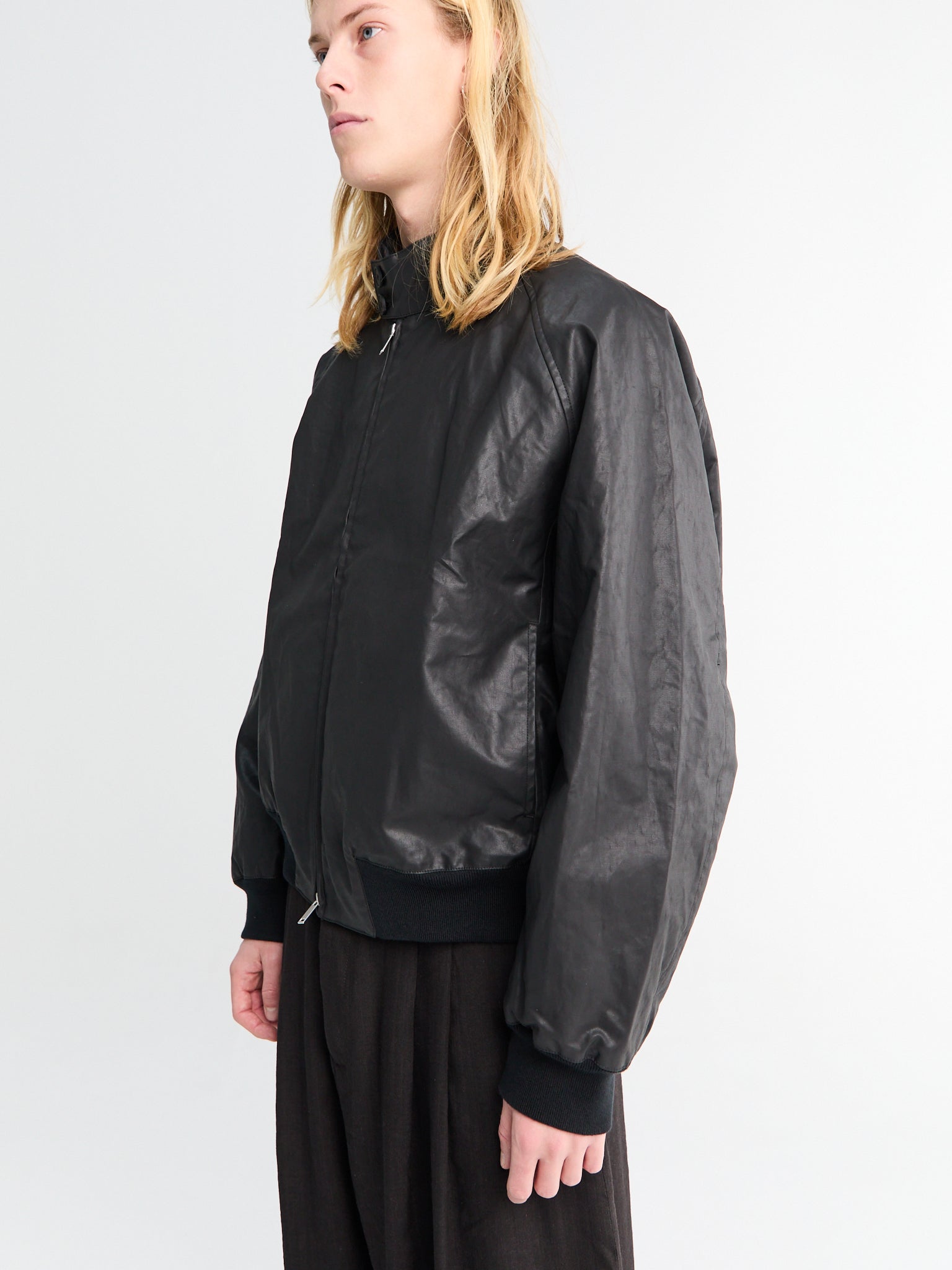 Lightweight jacket. Designed with a front zip, stand collar with button detail, and ribbed cuffs and hem.