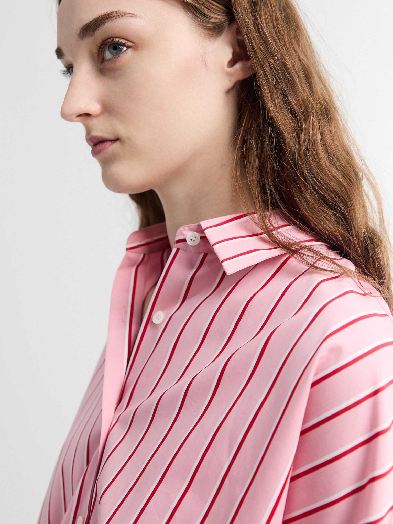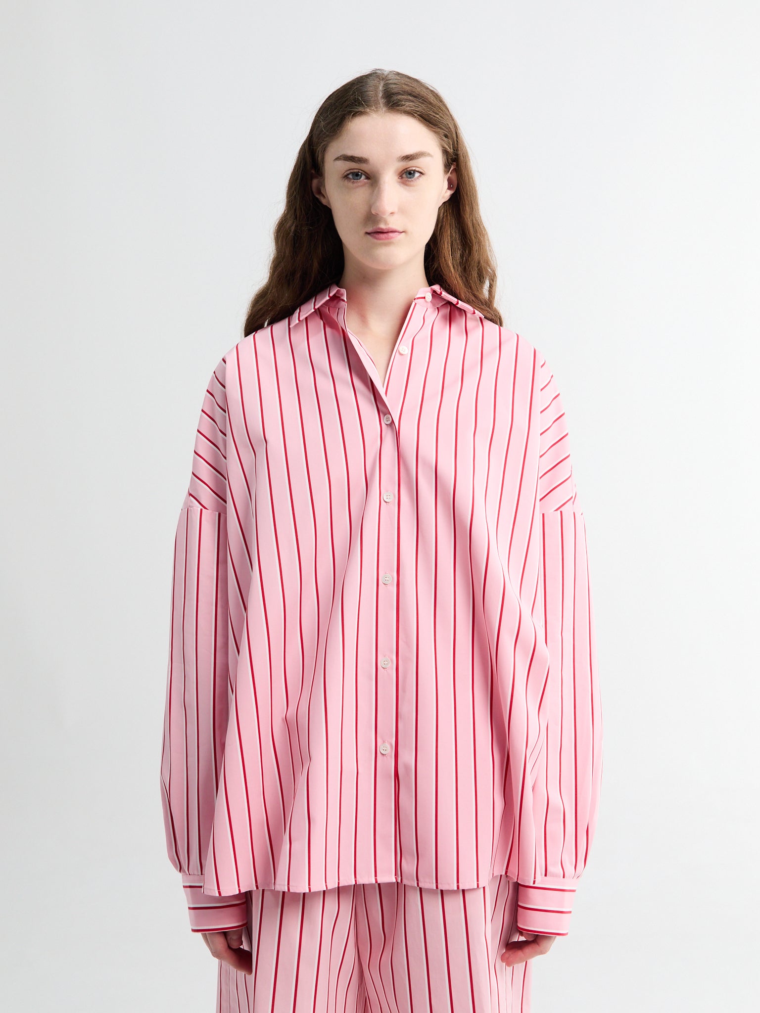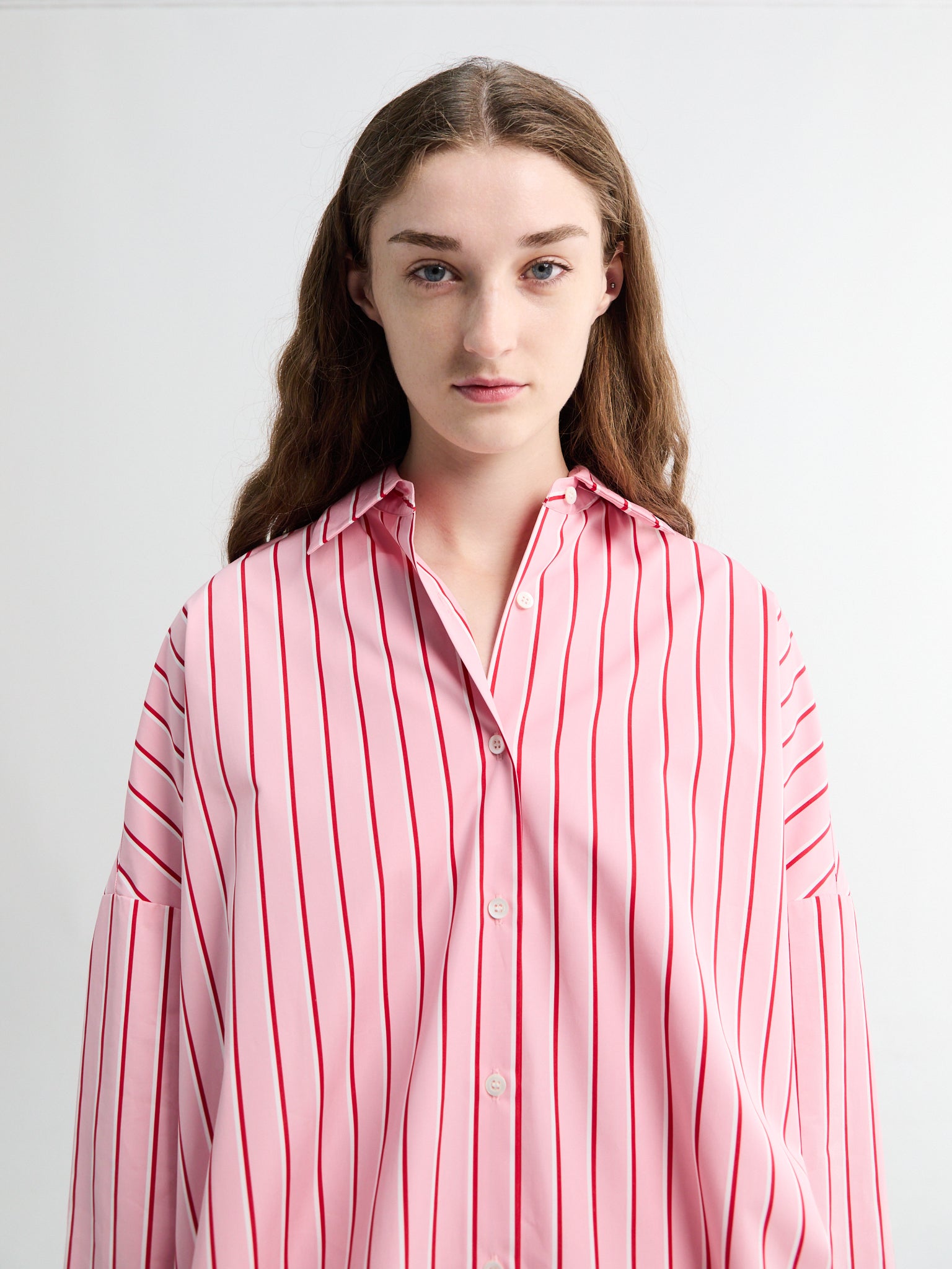 The cotton shirt is tailored from a crisp, stretch-cotton blend. Its oversized silhouette is structured with dropped shoulders.