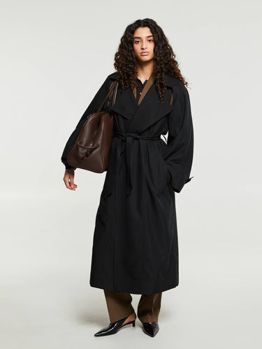 Astoria Cut-out Raglan Sleeve Trench Coat in Black
