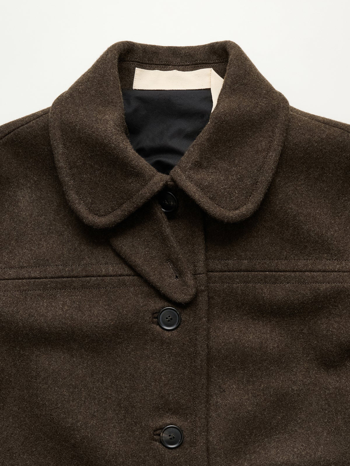 A classic, transeasonal jacket made from undyed Lodensteiner wool with a dense water- and wind resistant weave. Designed in a regular fit with an elegant silhouette, featuring a decorative collar latch, large pockets, and a defined yoke at the back