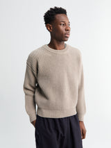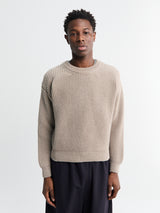 The Joel Jumper in Ash features an oversized chunky rib knit with a distinctive square silhouette and drop shoulder design. Crafted in London using a slow drop needle knitting technique, it uses 100% superfine wool that is RWS certified, sustainable, and fully traceable. Traditionally spun and dyed by the oldest spinner in Biella, this jumper combines quality craftsmanship with timeless style