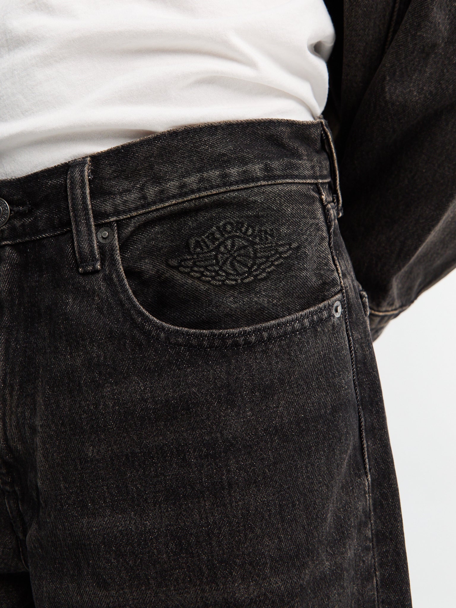 Made from black washed denim with a relaxed and loose fit. With simple co-branded logos and clean design, they blend everyday style with basketball heritage.