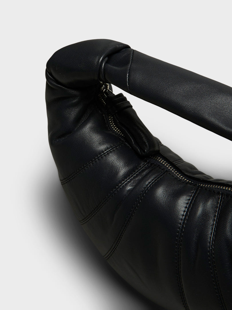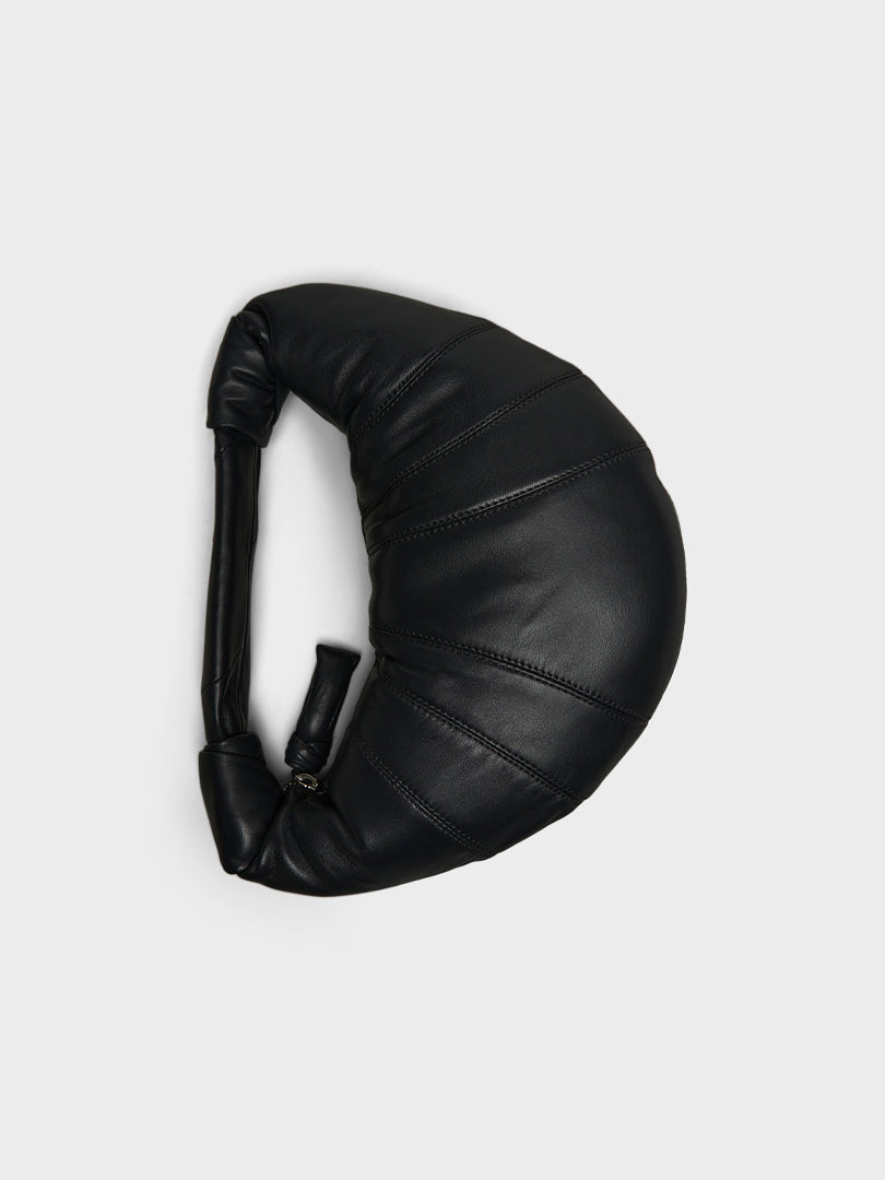 The Mini Fortune Croissant Bag offers a shorter strap for convenient hand-carrying. Its folded crescent design features topstitched cut-outs and signature elements from the iconic Croissant line.