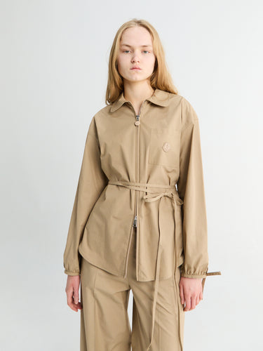 Cotton Poplin Zip-Up Shirt Jacket in Beige