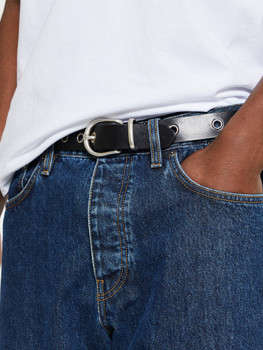 Made from leather, this 3cm wide belt features eyelet detailing and a classic buckle for a secure fit.