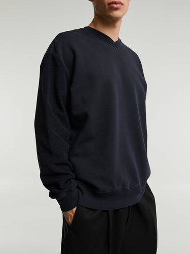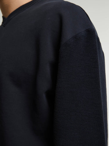 The Oliver Knitwear is made from a fleece fabric and boasts a unique touch with reversed sleeves and a contrasting texture. It's slightly oversized fit provides a relaxed look.