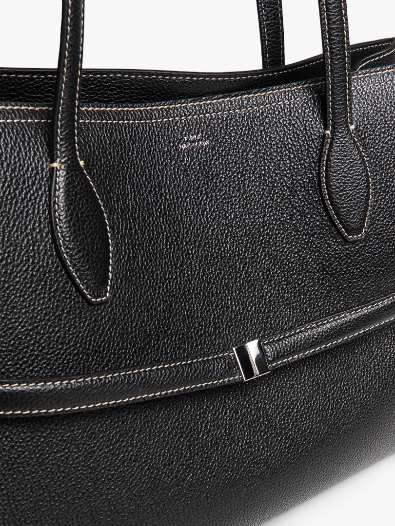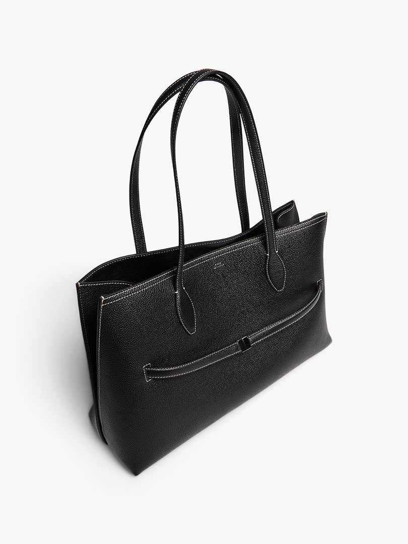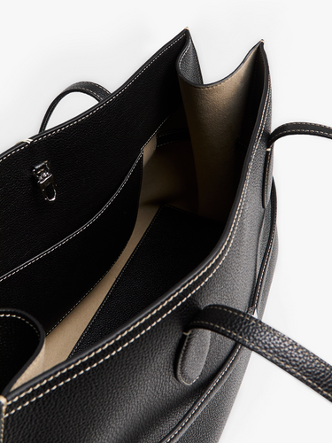 Graind Leather Lounge Tote Bag in Black