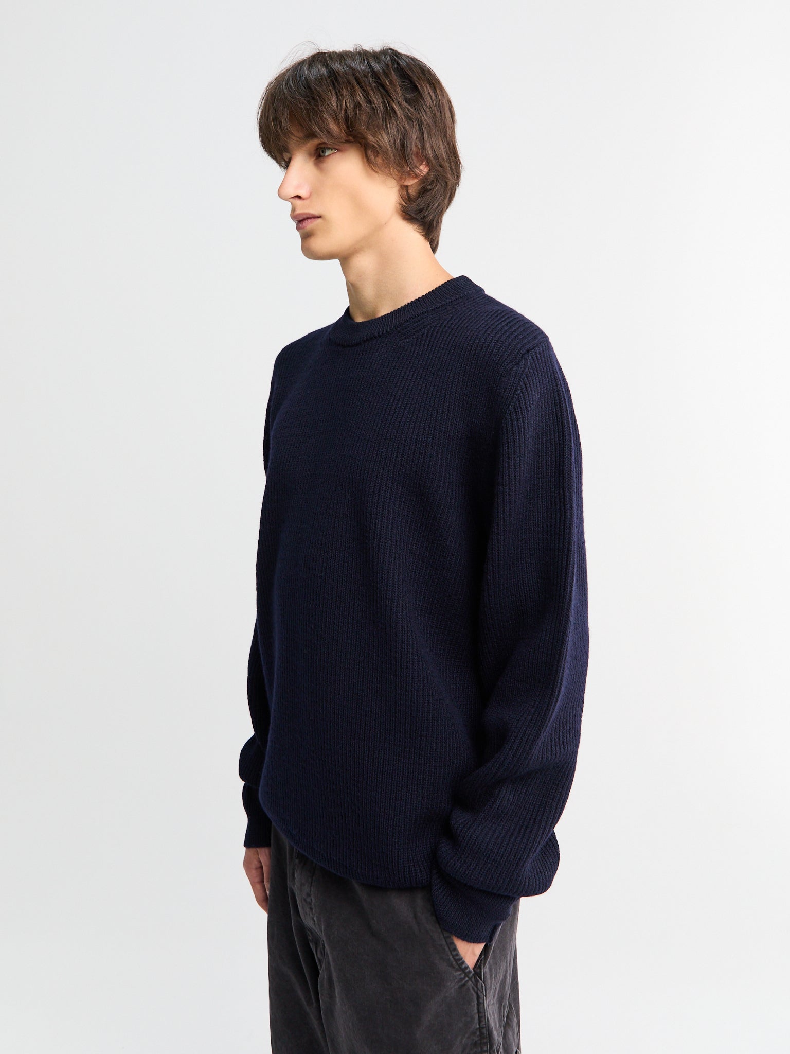 Henning Cotton Wool Rib Sweater in Dark Navy