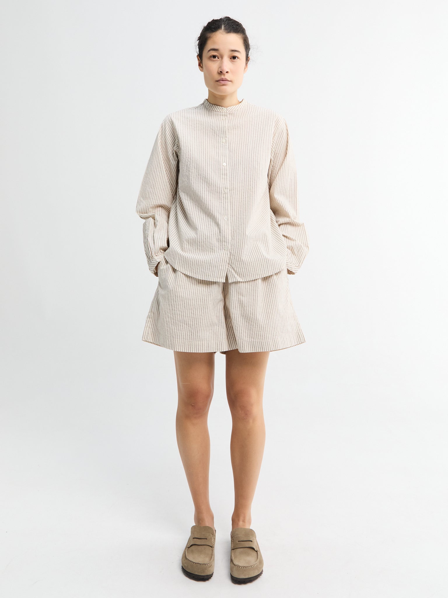 These Lulu Shorts are made from organic cotton poplin in Mix Black. They have an elastic waistband, a relaxed fit, and practical side pockets.