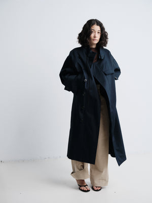 AF Agger puts a lot of effort and energy into ensuring that each product is of timeless quality & style. They want their products to represent an investment to their customers, not an impulsive one-use purchase. What primarily fuels this, is a drive to pursue sustainable thinking in all aspects of their process. Being a conscious consumer goes a long way. Luckily, nowadays, many sustainable and socially conscious garments are becoming more refined and incredible than ever. Whether they have a fully organic and sustainable, cradle to cradle, production, make use of second-hand materials or simply make lifelong-lasting unique garments, they all make for a better investment, both for yourself and the planet we all inhabit. The Danish brand was founded in 2012 by Kathrine Agger, with a goal of disrupting the way people think about clothing. Having graduated from the Royal College of Art in London she had extensive insights into crafting beautiful garments and silhouettes, but also knowledge of how to source luxury materials with natural fibers. She uses these techniques and materials to create collections that are rooted in an understated and effortless aesthetic, always focusing on one center piece garment, and building the rest around it. One of these center pieces are the oversized, water-resistant jackets, that come in beige and black. Taking inspiration from sea officer uniforms, it reinterprets the traditional silhouette of the trench coat, by exaggerating the buttoned collar and sleeve latches and embracing a cropped, oversized fit. It's made in, long lasting, british water resistant cotton twill, with a comfy corduroy lining in the collar. The jacket's, minimal, timeless and uniquely refined design is a testament to AF Agger's philosophy: resisting the label of being "a fashion brand" and instead focusing on creating products that are worth investing in.