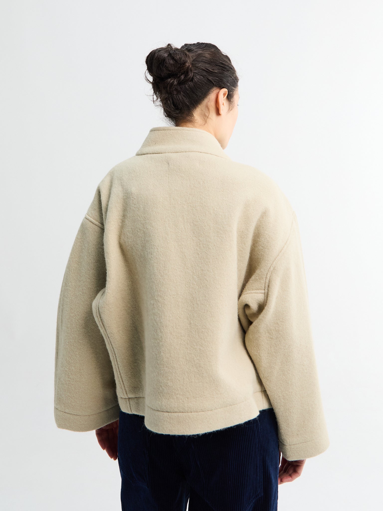 This boiled wool jacket features a dense, soft structure that resists wind and water while providing warmth. Pre-shrunk and built to last.