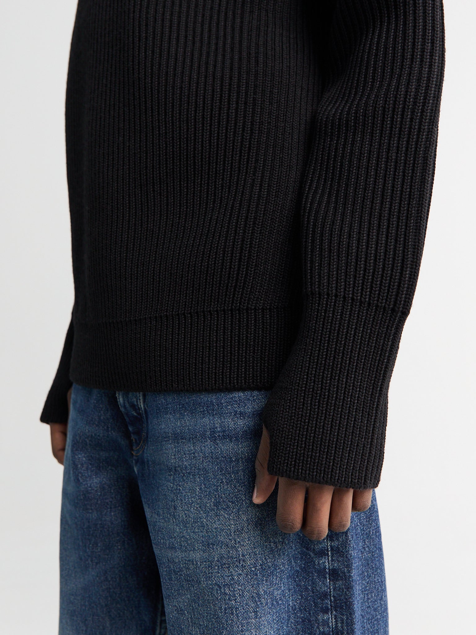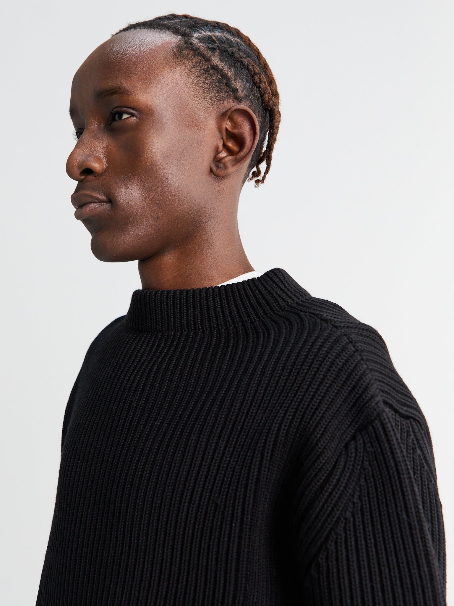 Andersen-Andersen's Navy Crewneck in Black is crafted from pure new wool for a heavy and durable quality. It features a regular fit, extended sleeve rib with thumb holes.