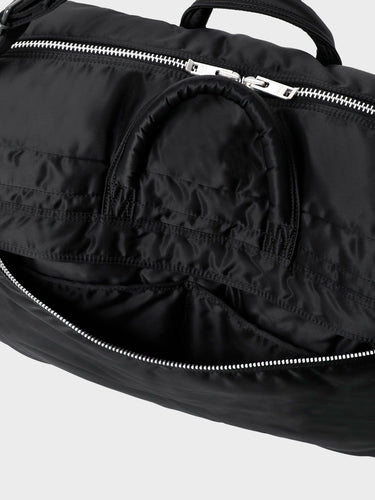The Tanker Duffle Bag is part of Porter-Yoshida & Co's 1983 collection. Built with three-layer nylon and polyester construction, it features multiple exterior pockets, a zipped main compartment, two interior sections, reinforced base, and an adjustable shoulder strap. Dust bag included