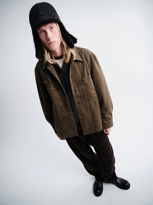 Bill Unlined Exaggerated Wale Cotton Corduroy Workwear Jacket in Dark Chocolate Brown