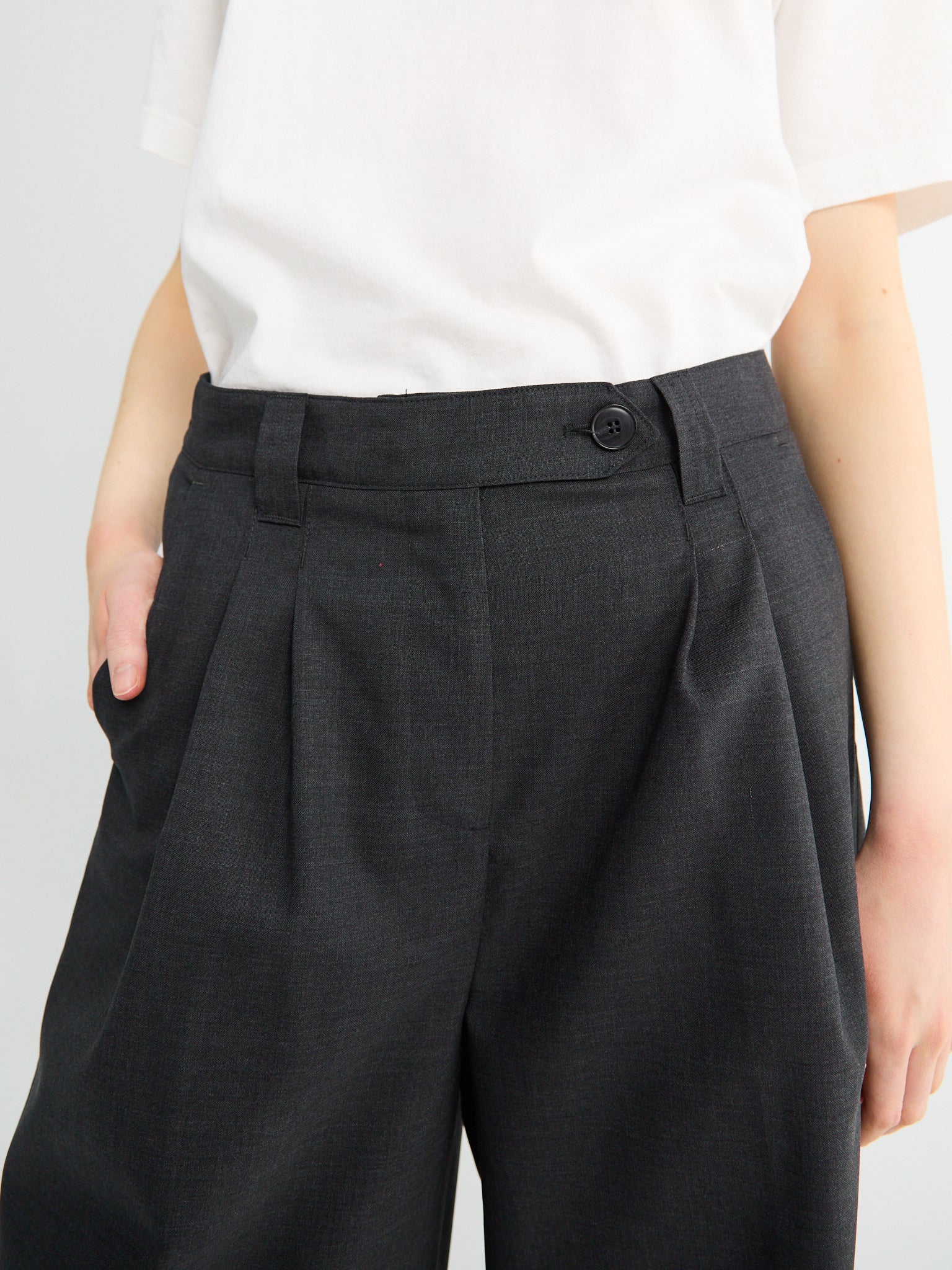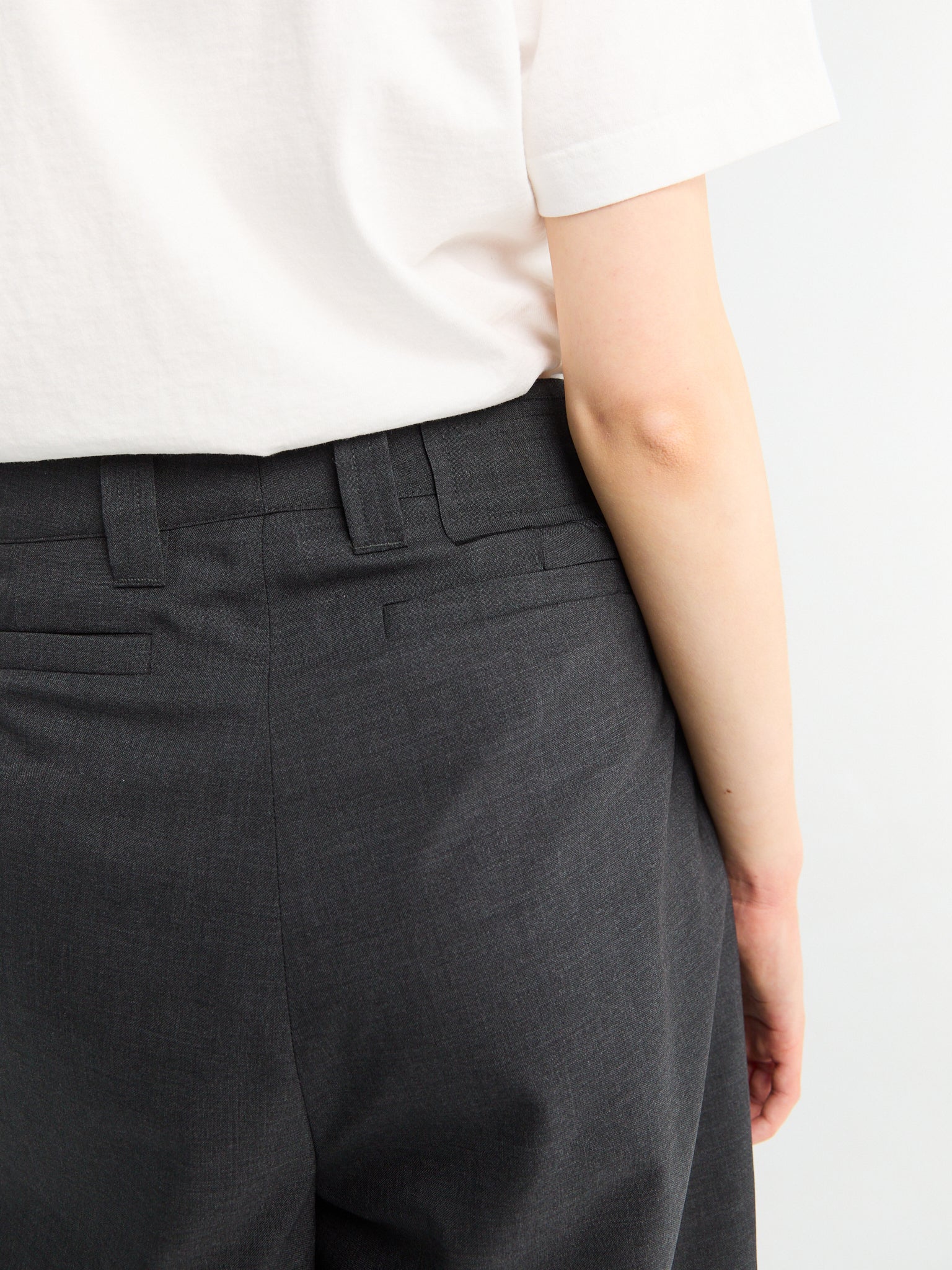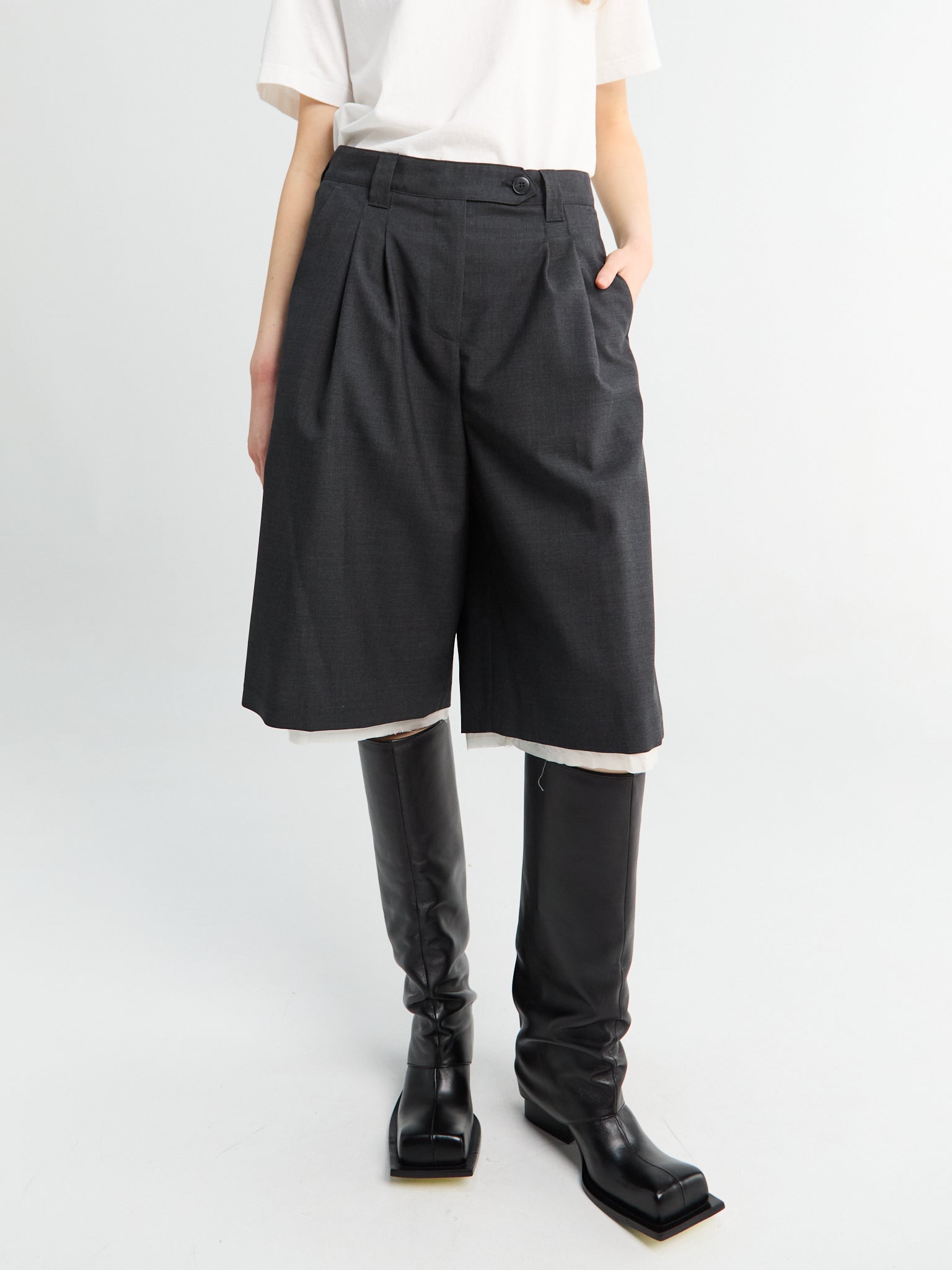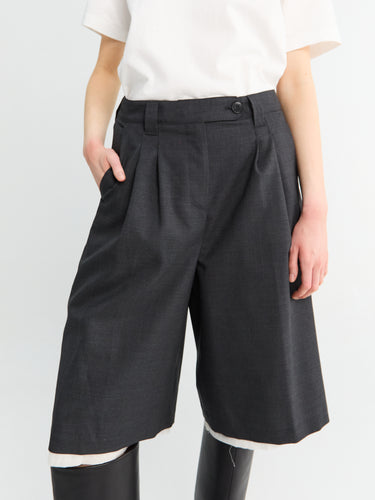 Cut from a dark grey fabric that provides a tailored structure, the Slash Shorts feature a relaxed, straight-leg silhouette. This pair is designed with angled front slash pockets and a clean, minimal waistband complete with a zip fly.