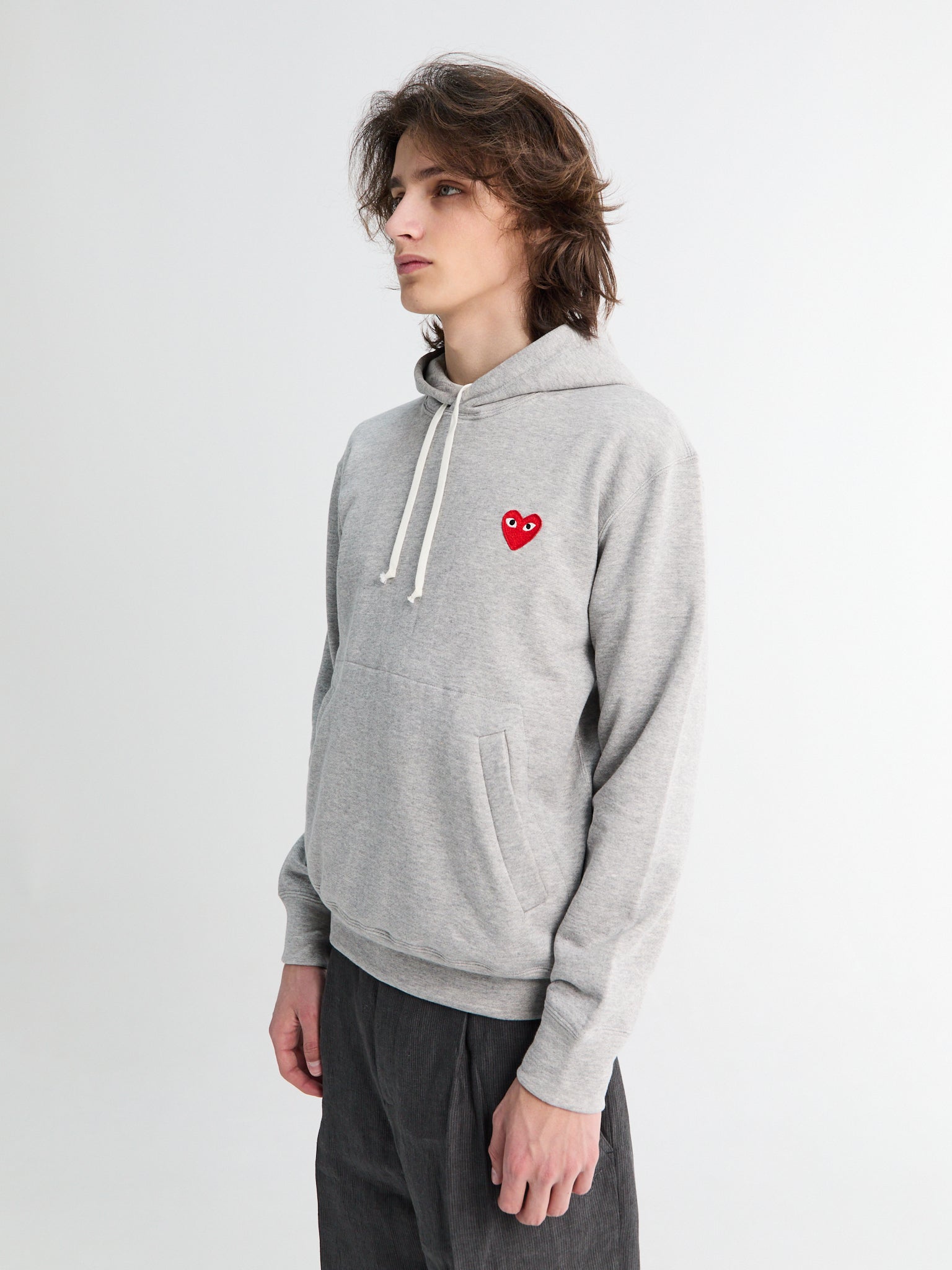 This grey hoodie features a soft cotton fabric with a mélange effect. With a signature heart motif at the chest, drawstring hood, ribbed cuffs and hem, and a front pouch pocket. Complete with the French terry lining and straight hem.