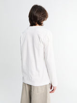 This white long sleeve T-shirt features a classic crew neck, straight seams, and a clean, minimal silhouette. Crafted from soft and durable cotton with a subtle jersey texture. Finished with a bold red emblem logo applied to the front.