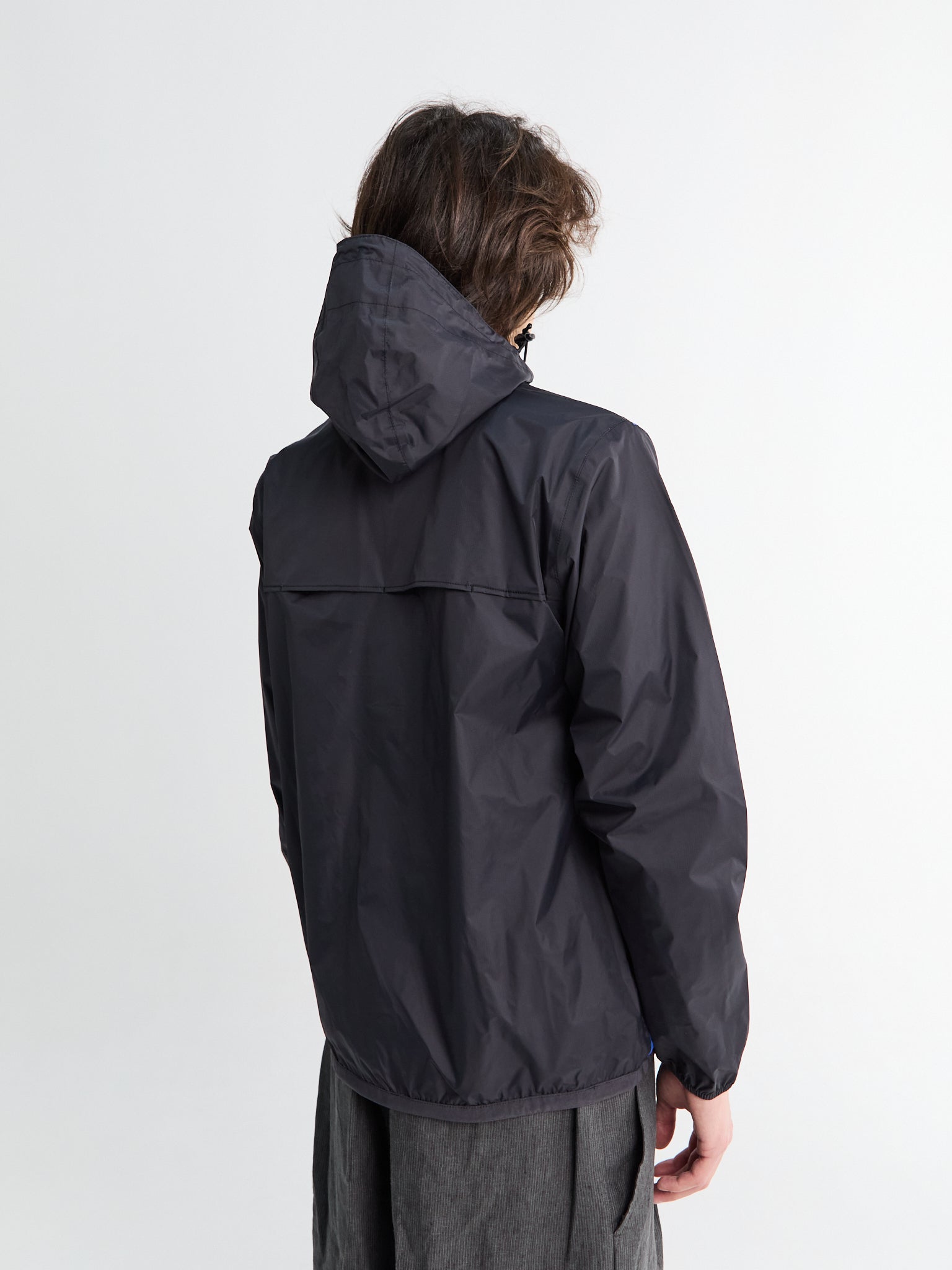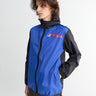 This blue and black hooded jacket from Comme des Garçons Play blends clean design with subtle edge. Featuring the iconic heart logo on the chest, it offers a bold contrast in color while keeping things minimal.