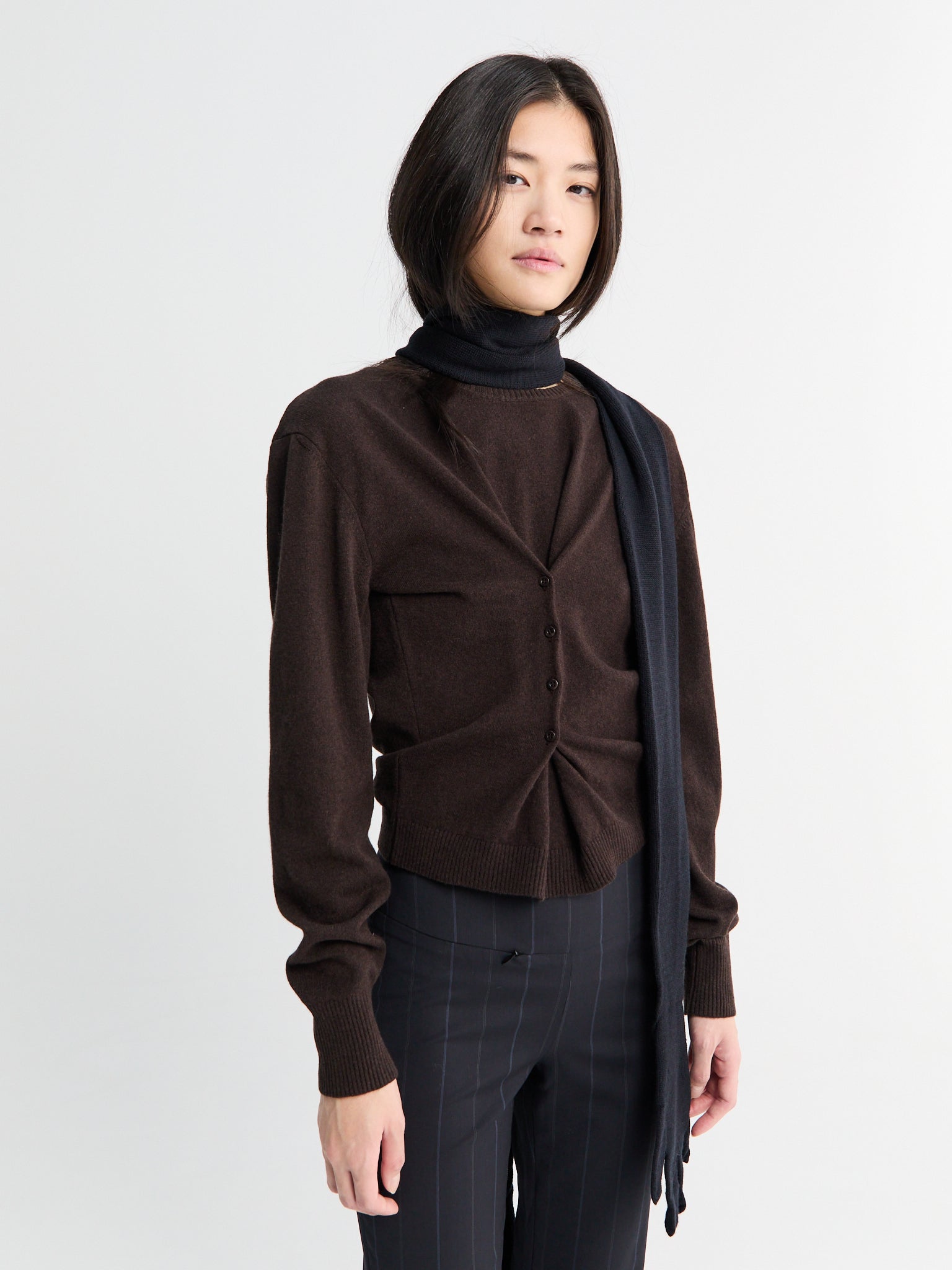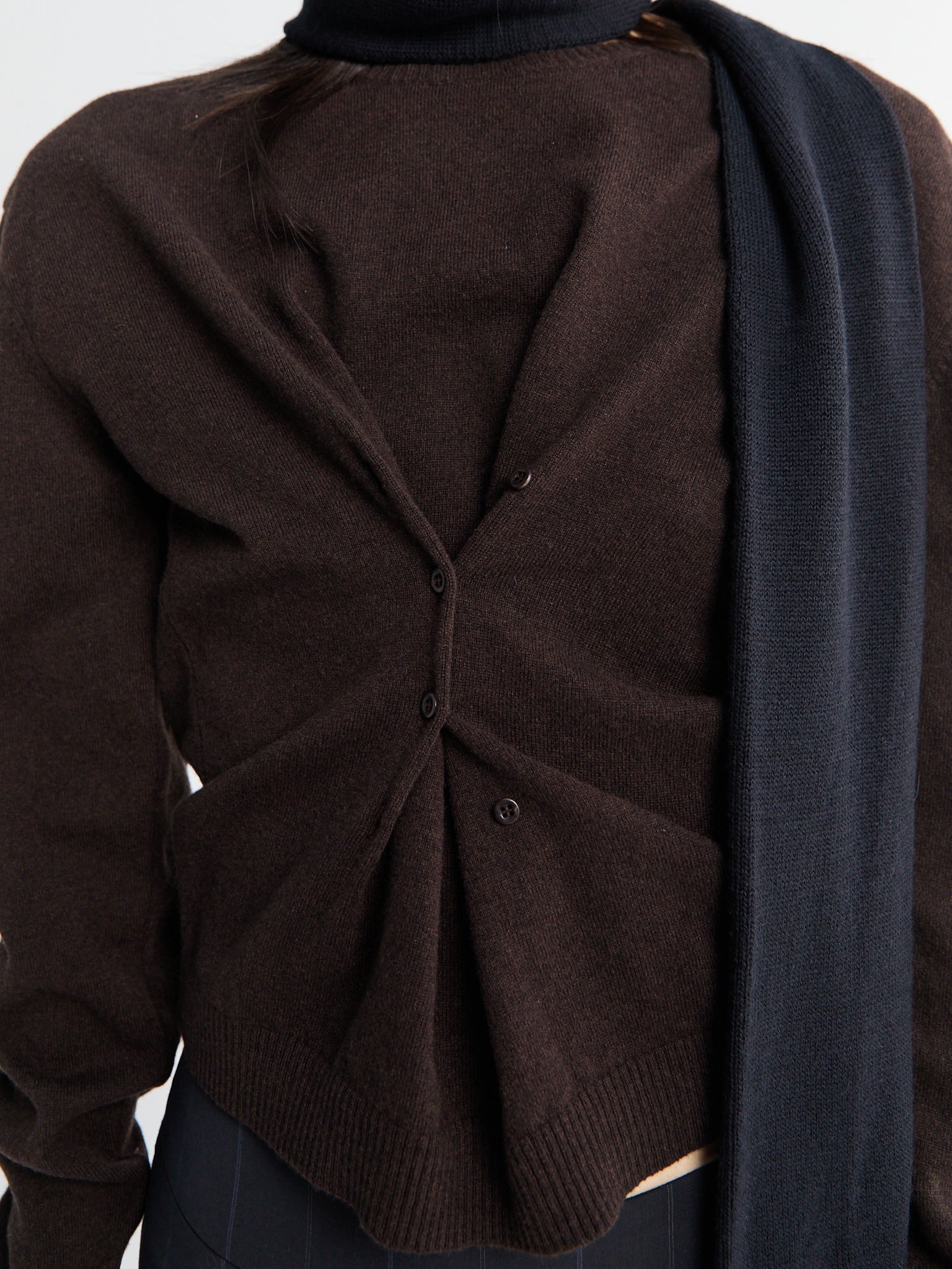 This cardigan combines comfort with refined styling, featuring buttons placed waist that create a flattering silhouette. Crafted from a luxurious wool and cashmere blend, it delivers warmth and softness in a versatile medium weight perfect for layering through transitional seasons.