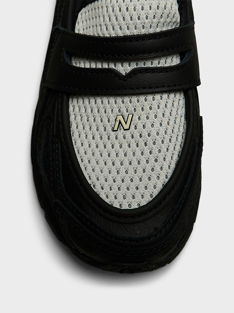 A new reimagined penny loafer-sneaker from New Balance. The U19068G9 features a classic penny loafer detail with a contrasting white mesh toe box The design mixes early 2000s New Balance running shoe design and classic men's footwear.