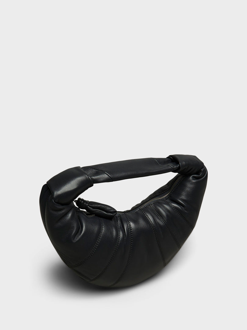 The Mini Fortune Croissant Bag offers a shorter strap for convenient hand-carrying. Its folded crescent design features topstitched cut-outs and signature elements from the iconic Croissant line.
