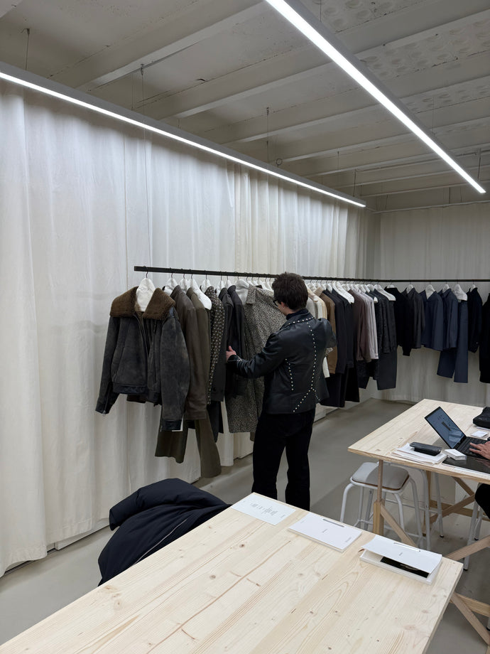 My first time at the SONO showroom, and our third season buying. SONO was founded by Stephanie and Simon, former designers at Lemaire and The Row, so they know exactly what they’re doing. They care deeply about the entire process — from materials to production — and primarily work with 100% organic textiles, woven in Italy and sewn in France or London. Thanks to their strong network within the industry and among suppliers, they’re able to produce in smaller quantities and avoid overproduction, without compromising on the quality of the fabrics they use.
