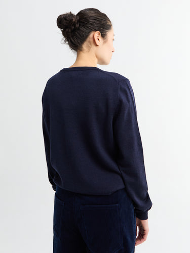 Merino knit crew neck in Navy