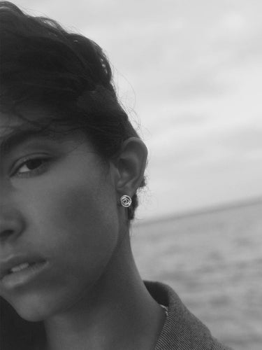 Gold plated earring from Lea Hoyer with an uneven surface and a spiral design.