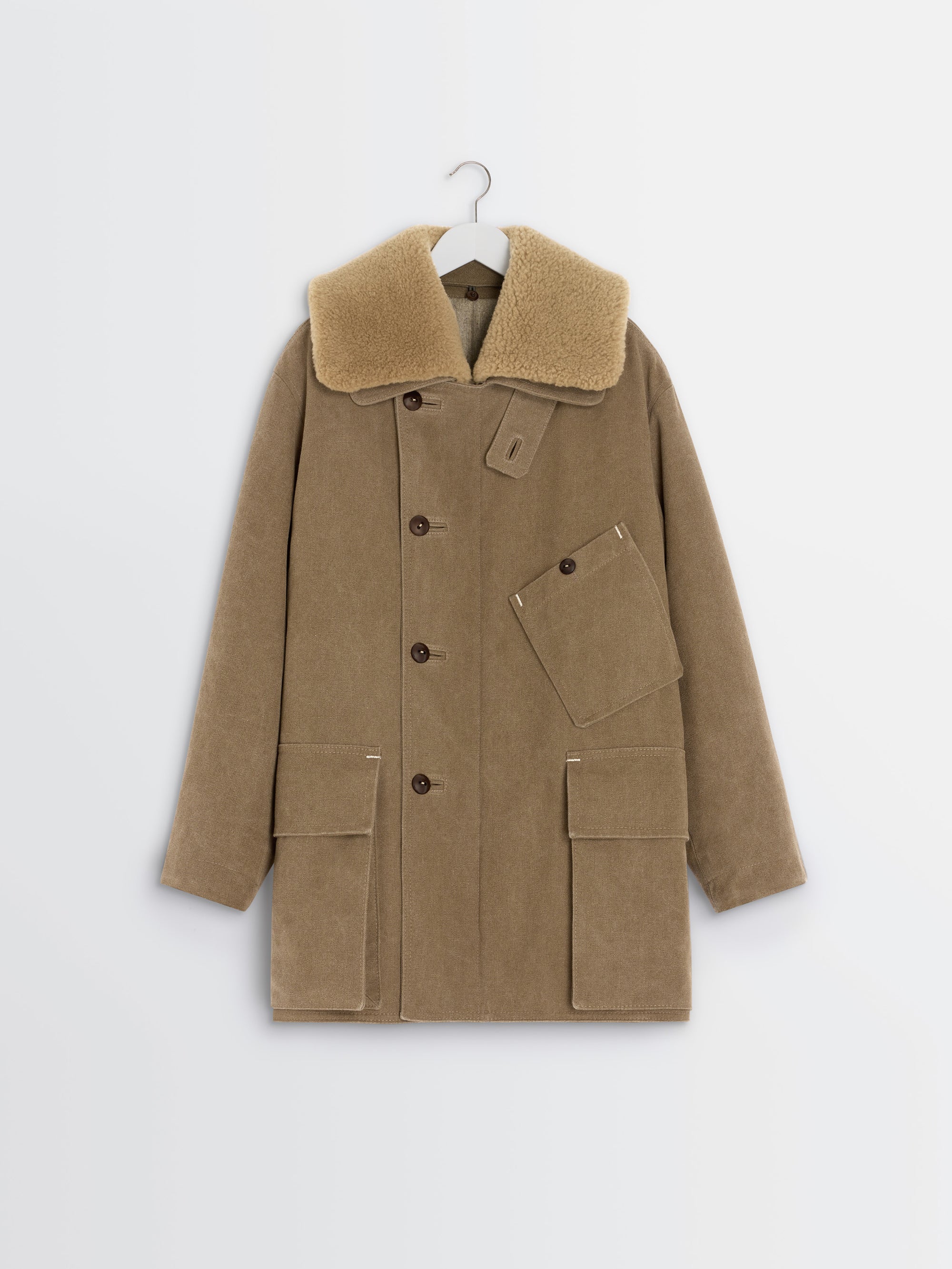 This Canadian-inspired winter parka features a quilted lining and a removable faux fur collar. Crafted from durable, thick cotton canvas, it offers an oversized fit with a water-repellent finish for added protection against the elements.