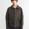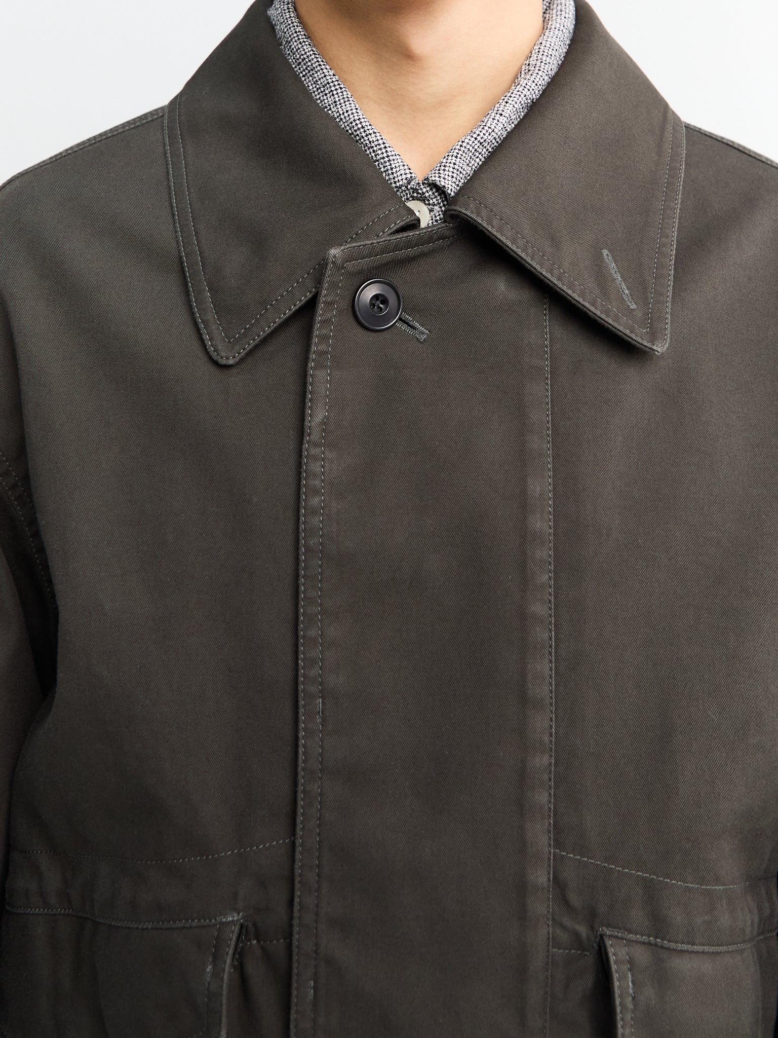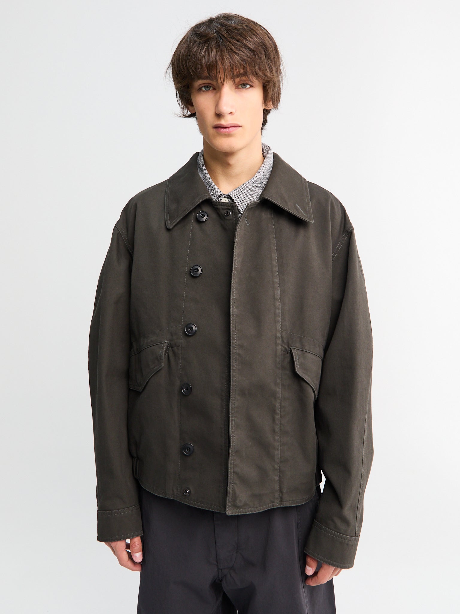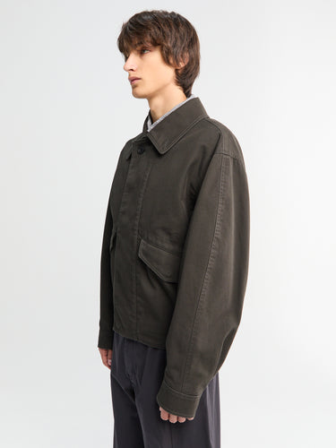 Inspired by the world of workwear, this boxy blouson features pockets and contrast topstitching. Made from a thick cotton twill, a Japanese fabric that has undergone a rinse treatment to add softness to the garment. The piece will develop a patina over time.