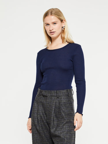 Wool & Silk Longsleeved Top made with a blend of merino extra fine wool and high quality silk, this top offers a warm, soft touch on your skin and a comfortable fit.
