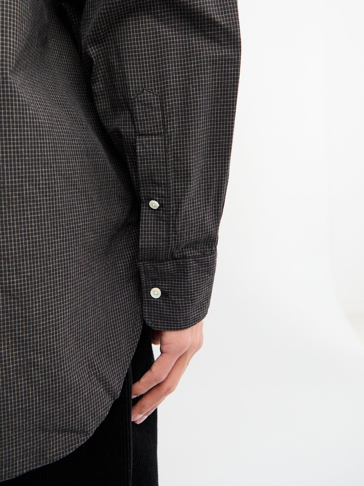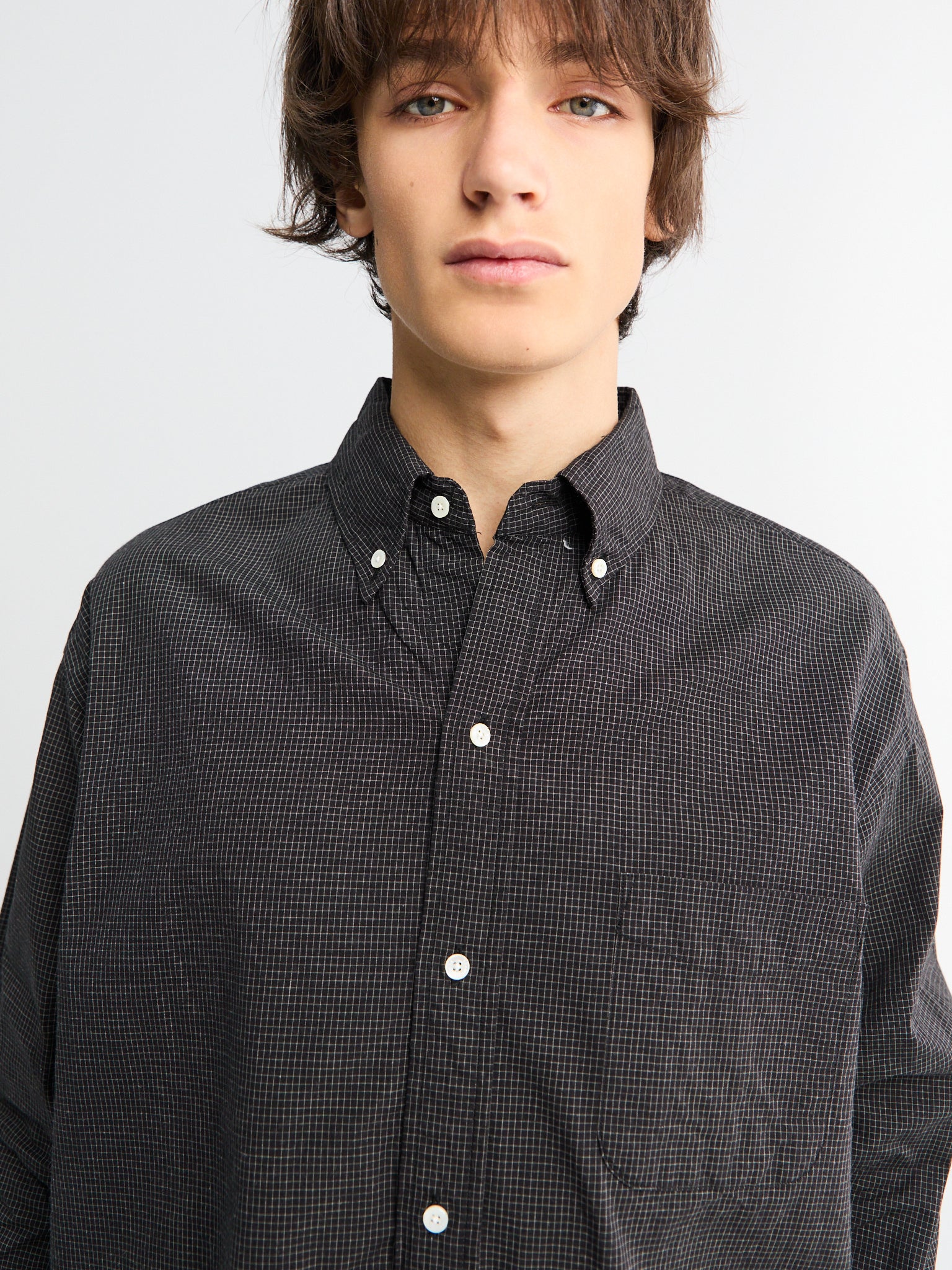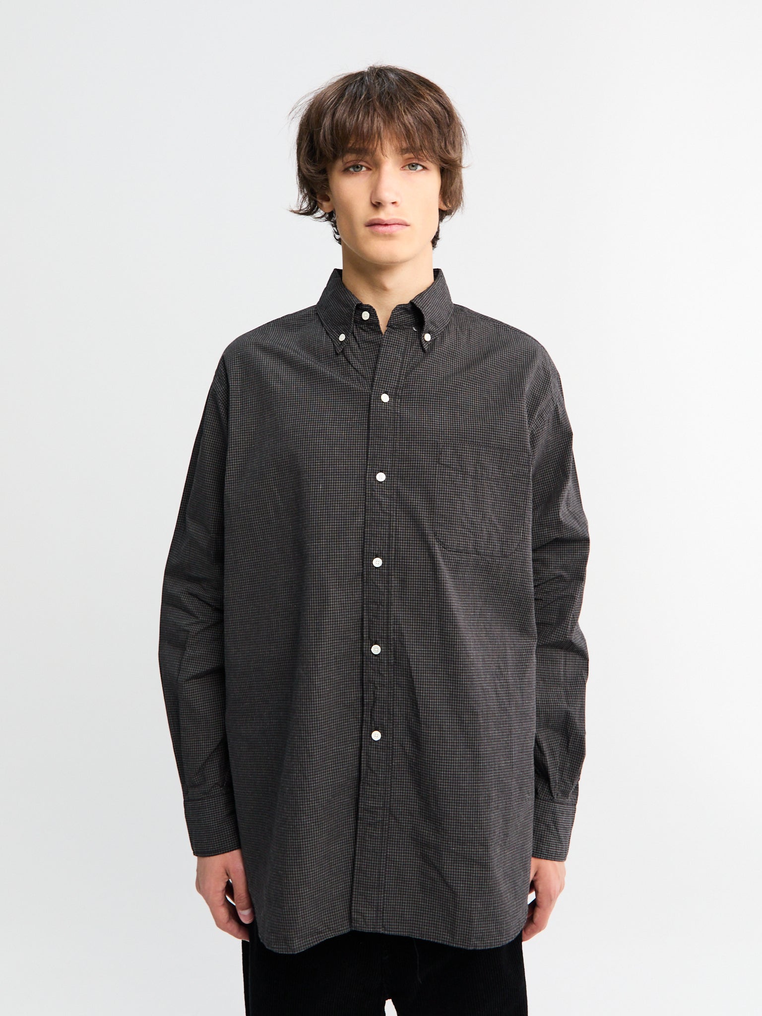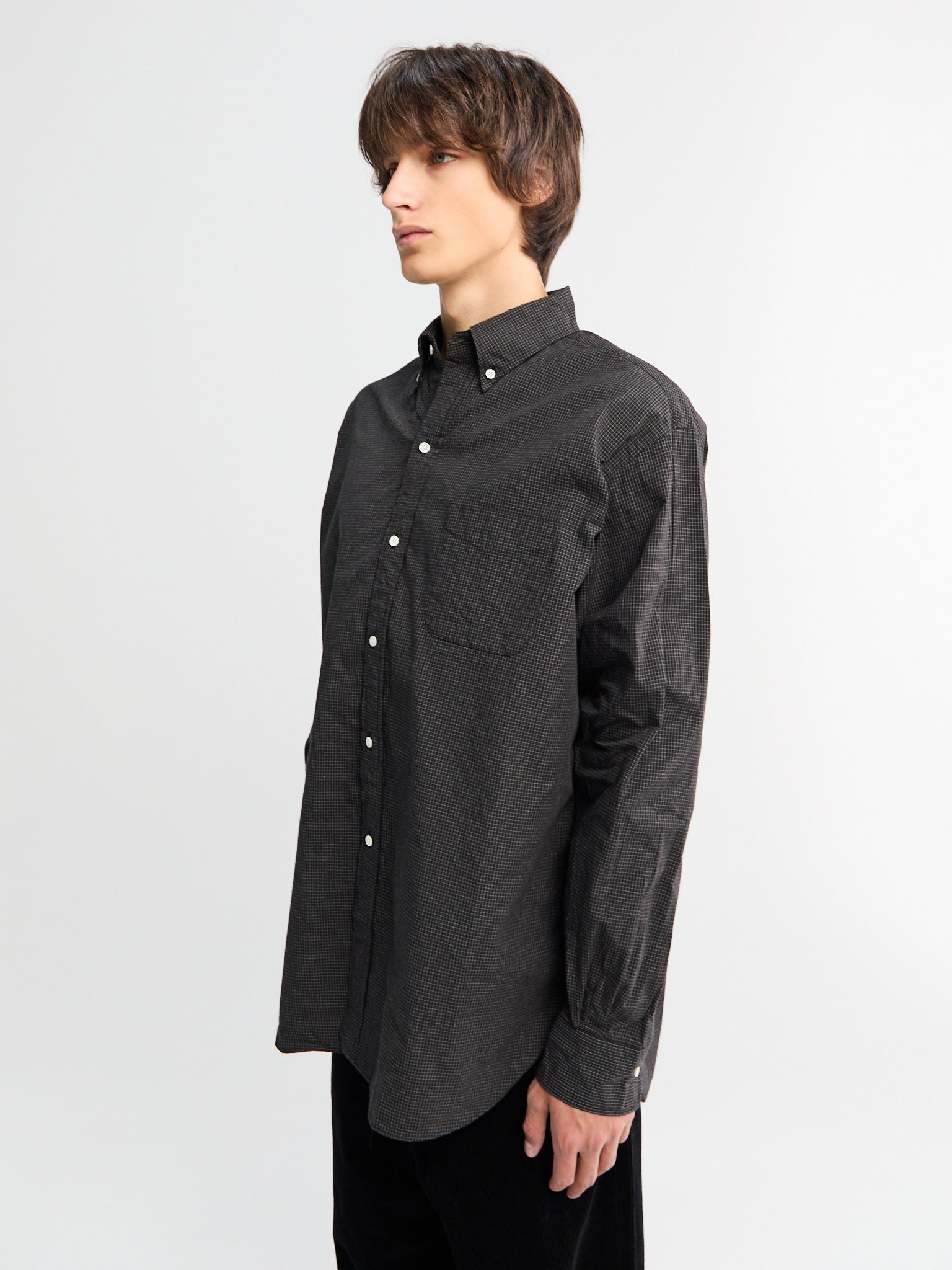 The B.D. Classic-fit Graph Plaid Shirt in Black offers a timeless design with a regular fit and button-down collar. Made from 100% cotton, it features a chest pocket and button cuffs for practical wear