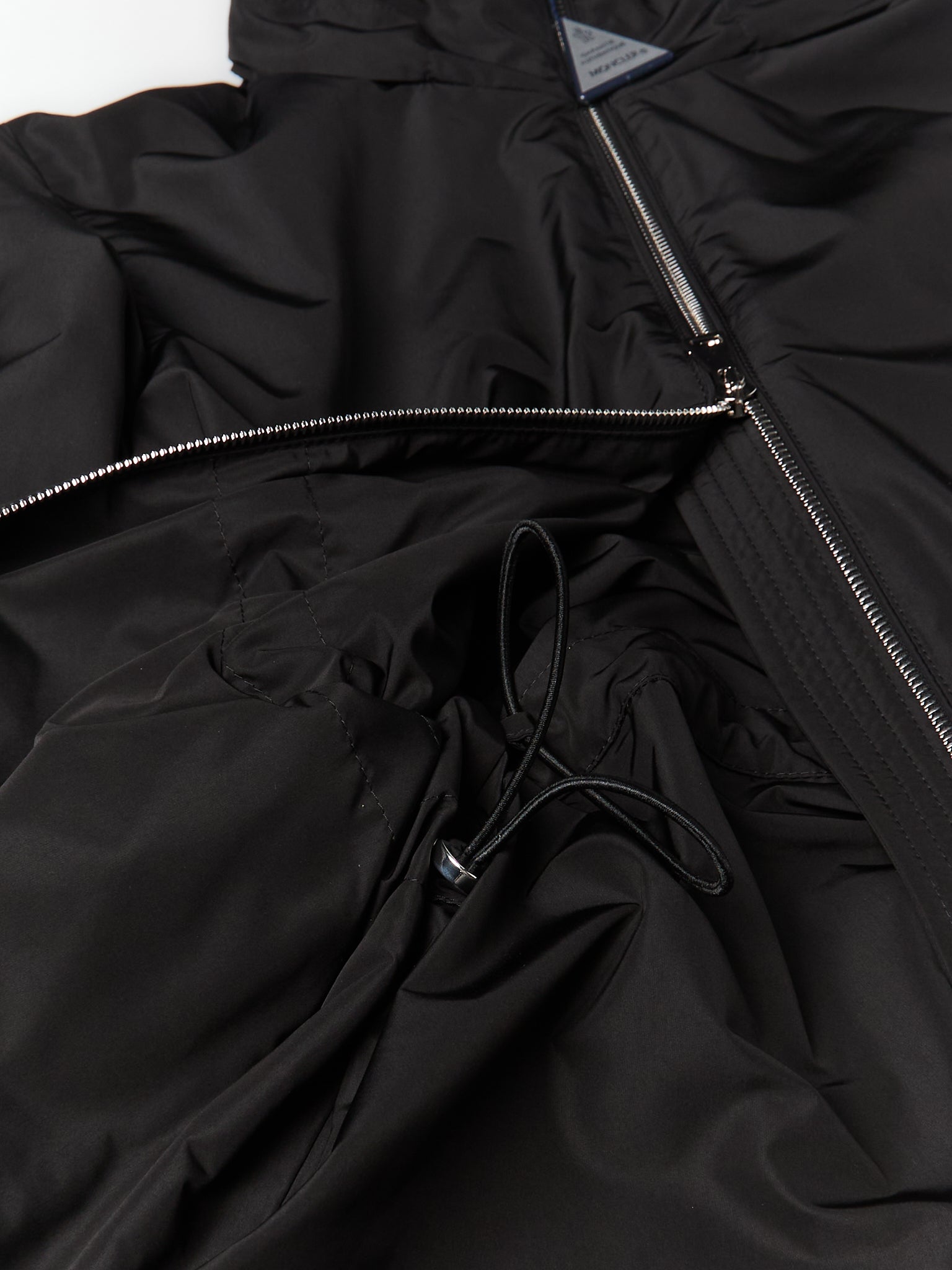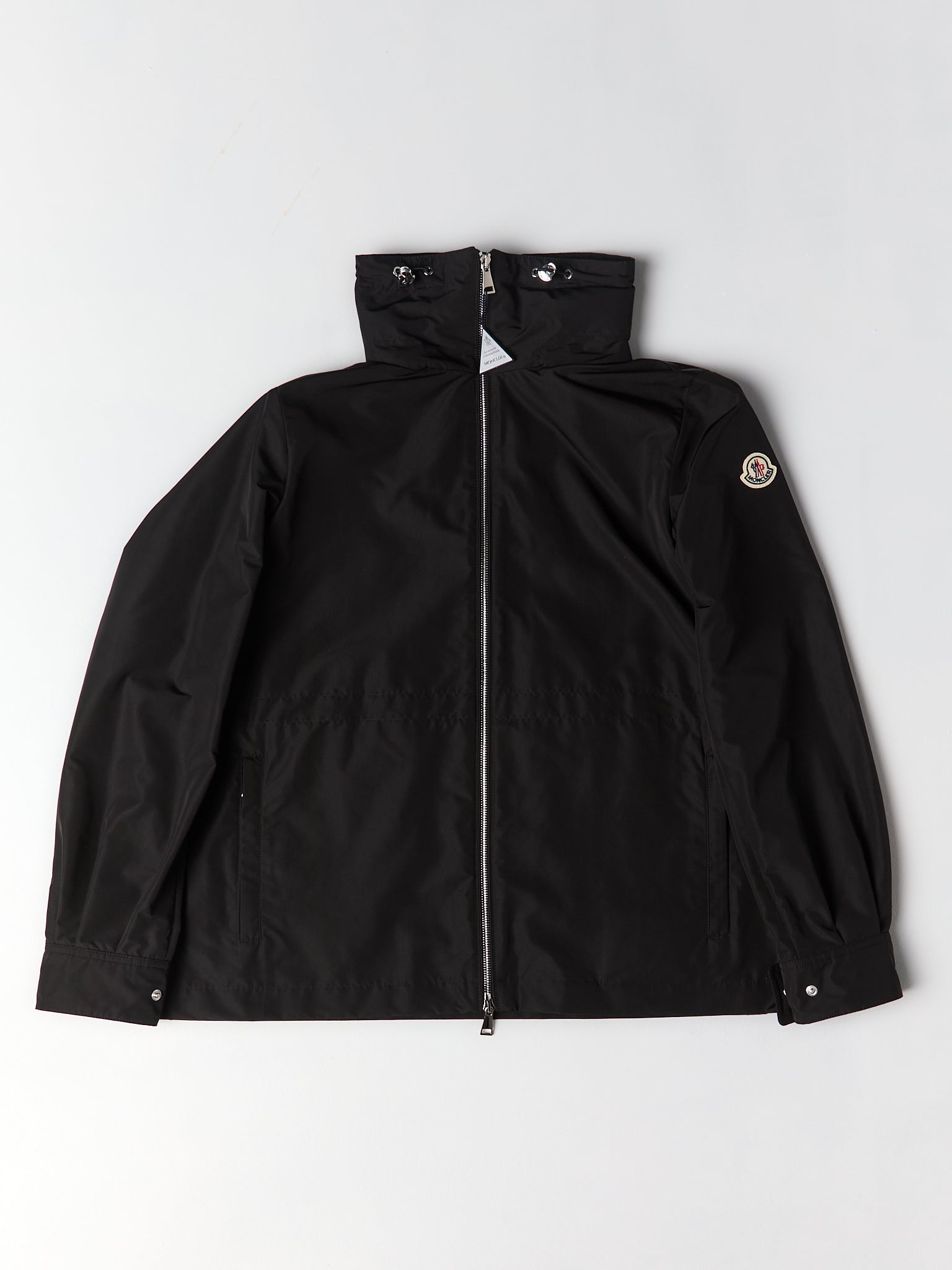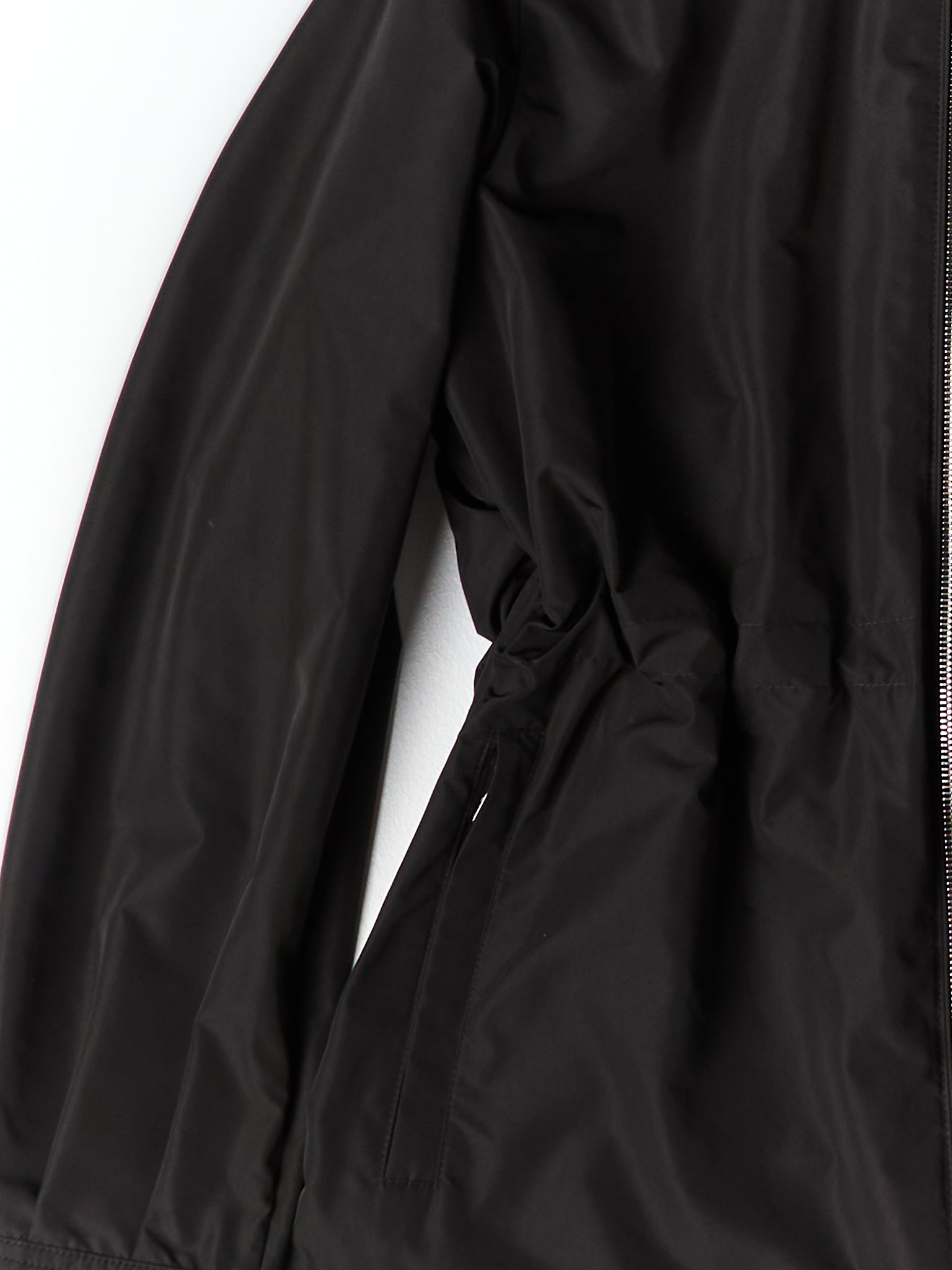 Made from micro fabric, a dense material with a taffeta-like texture. It features a detachable hood and an adjustable waistline for a customized fit. This jacket works for everyday wear and transitions between seasons.